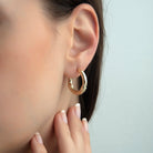 14 Ayar Altın Çift Taraflı Halka Küpe