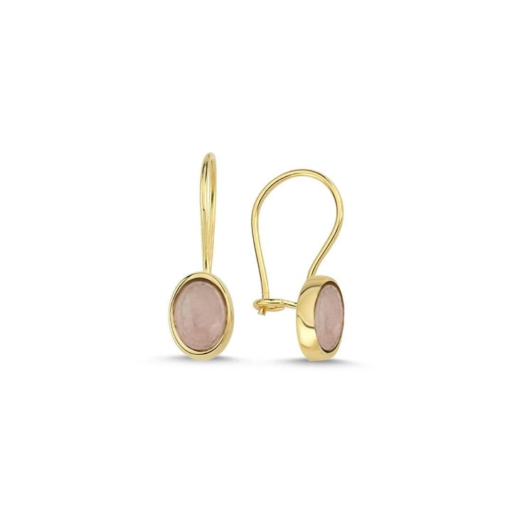 14 Ayar Altın Pembe Kuars Taşlı Küpe