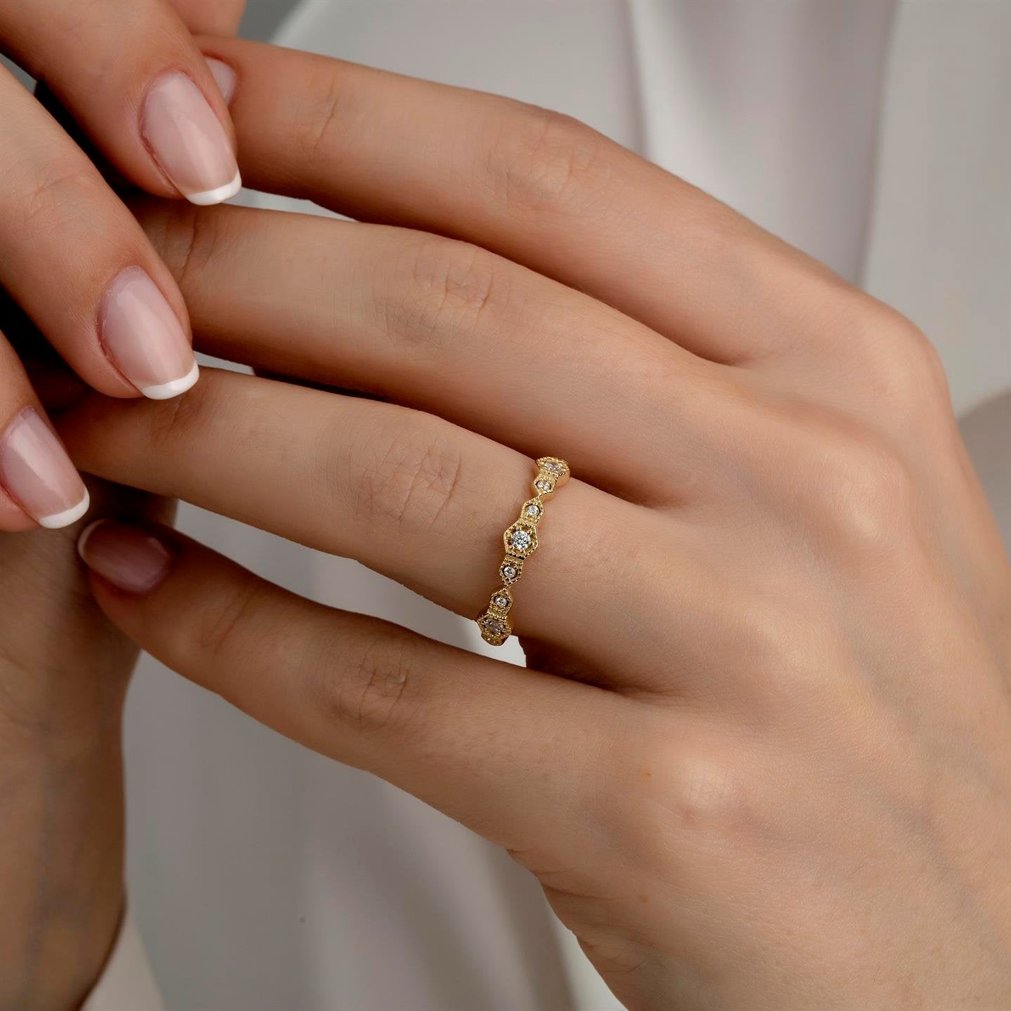 14 Ayar Altın Art Deco Taşlı Kombinlenebilir Minimal Yüzük