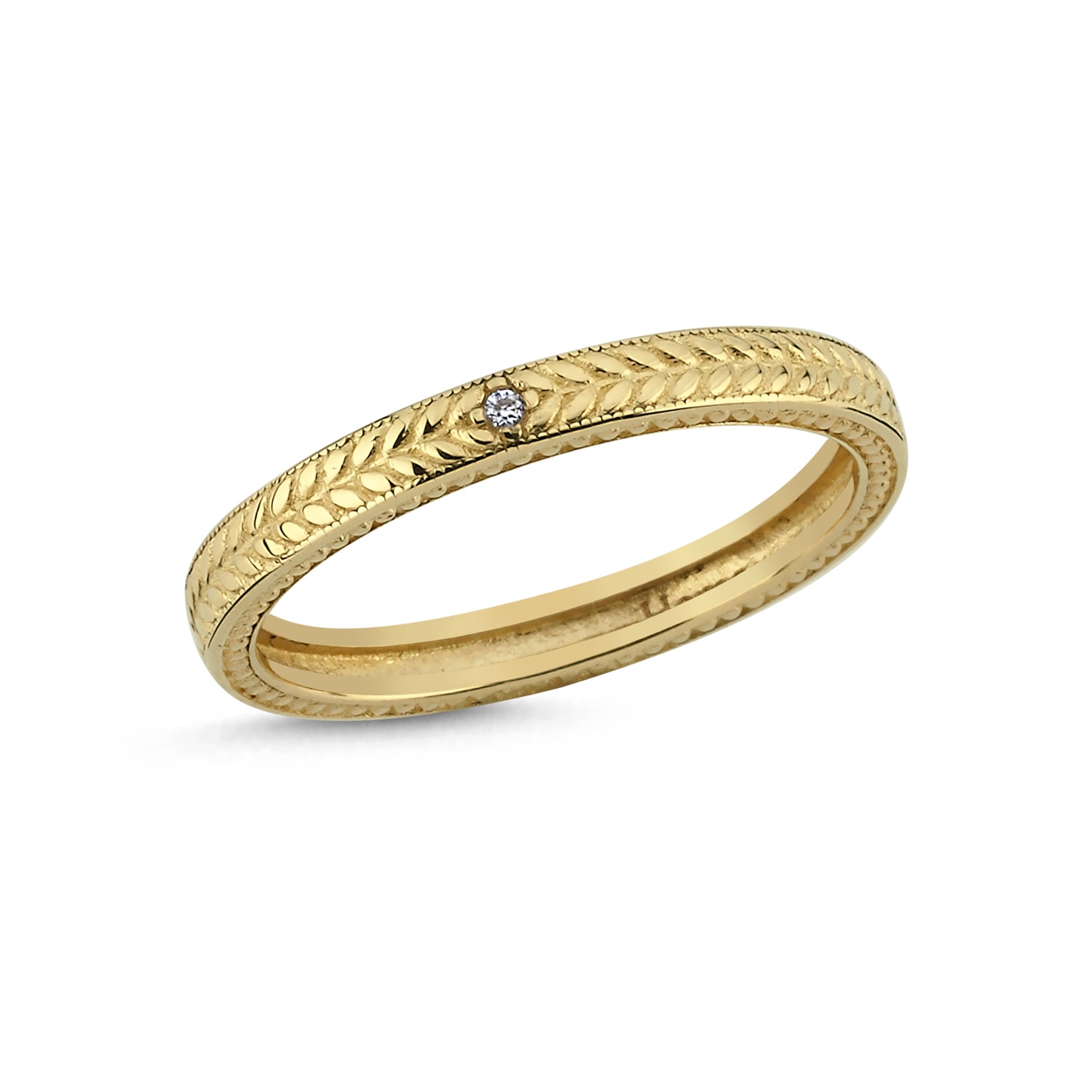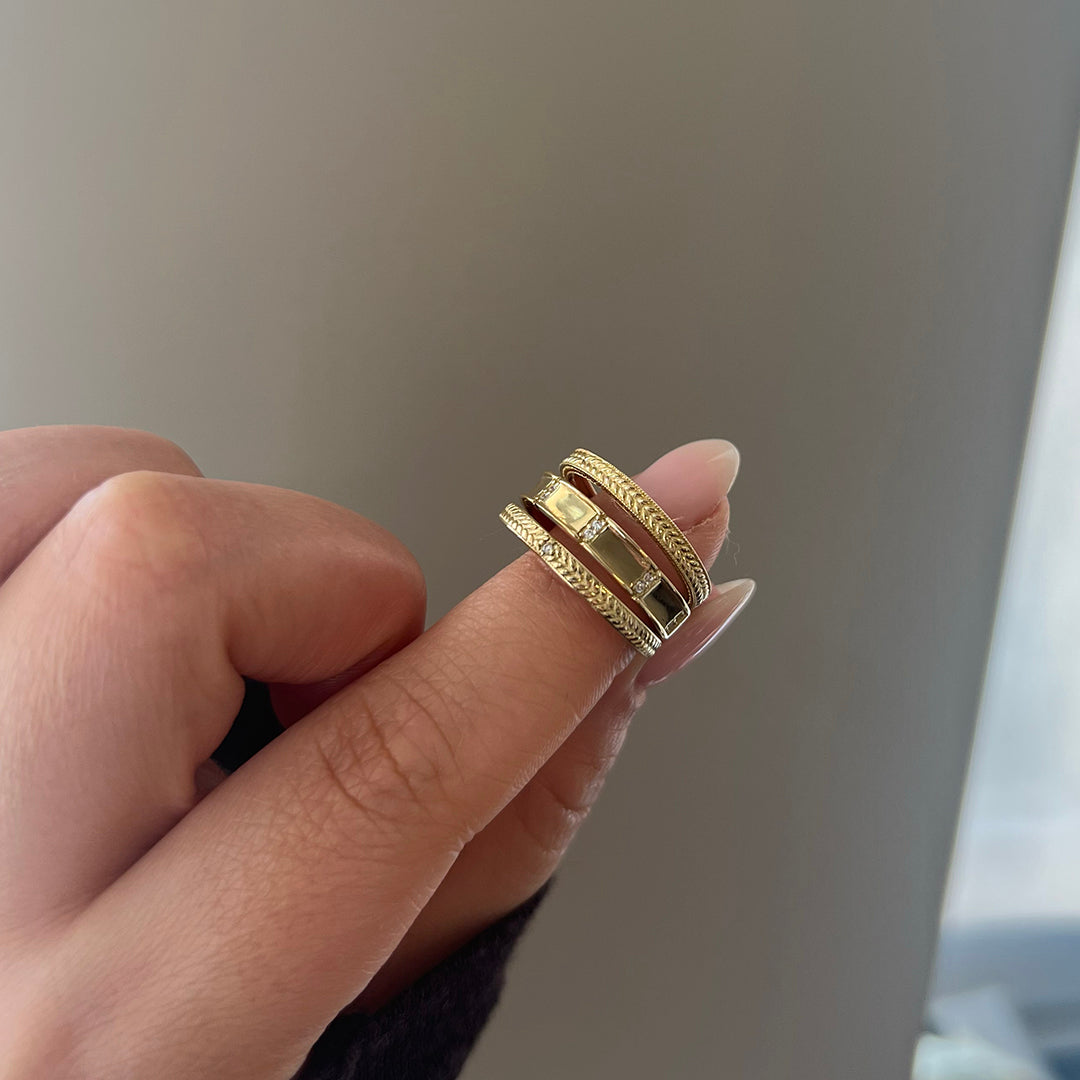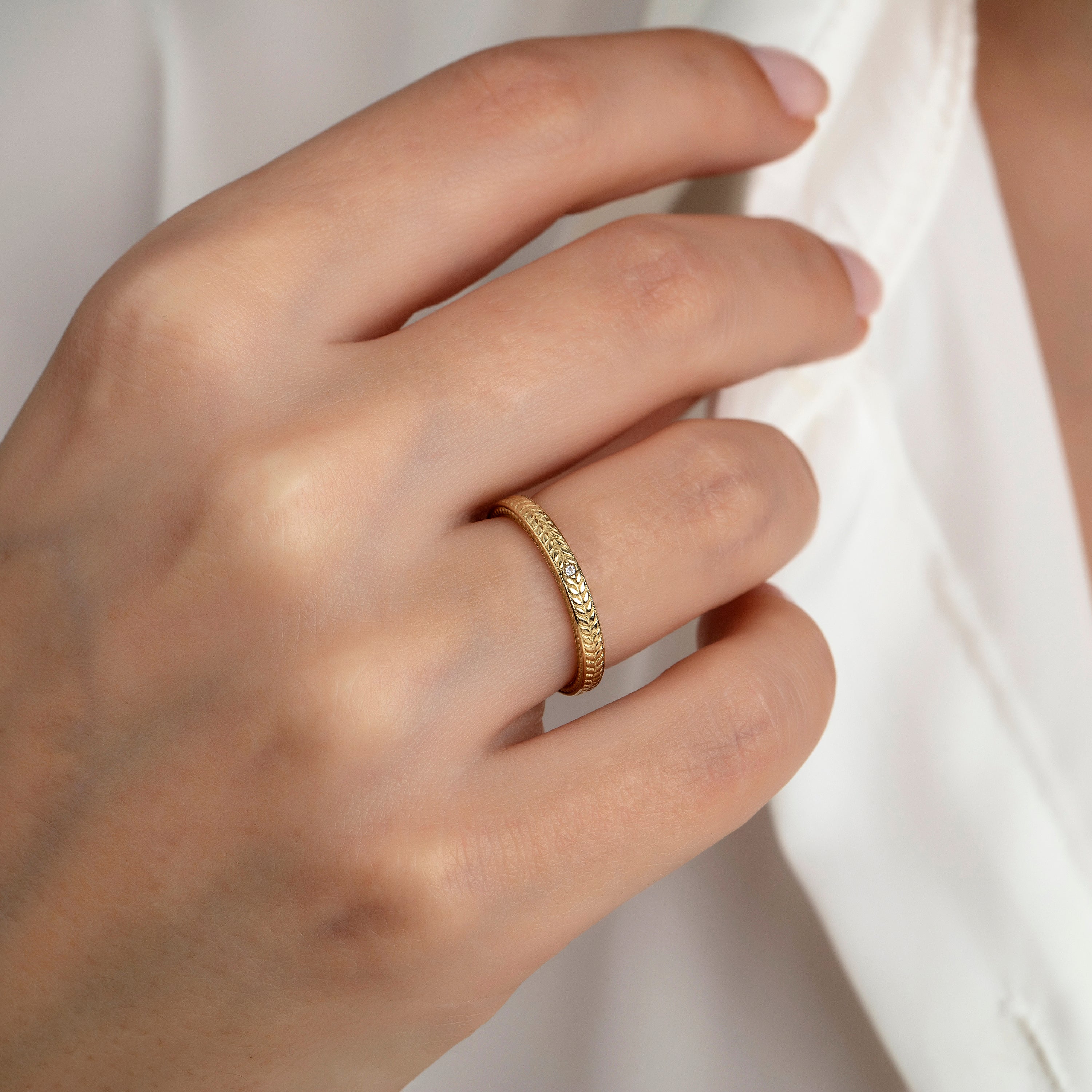 14 Ayar Altın Art Deco Tek Taşlı Kombinlenebilir Minimal Yüzük