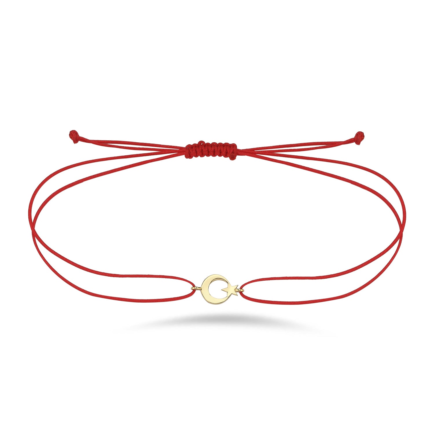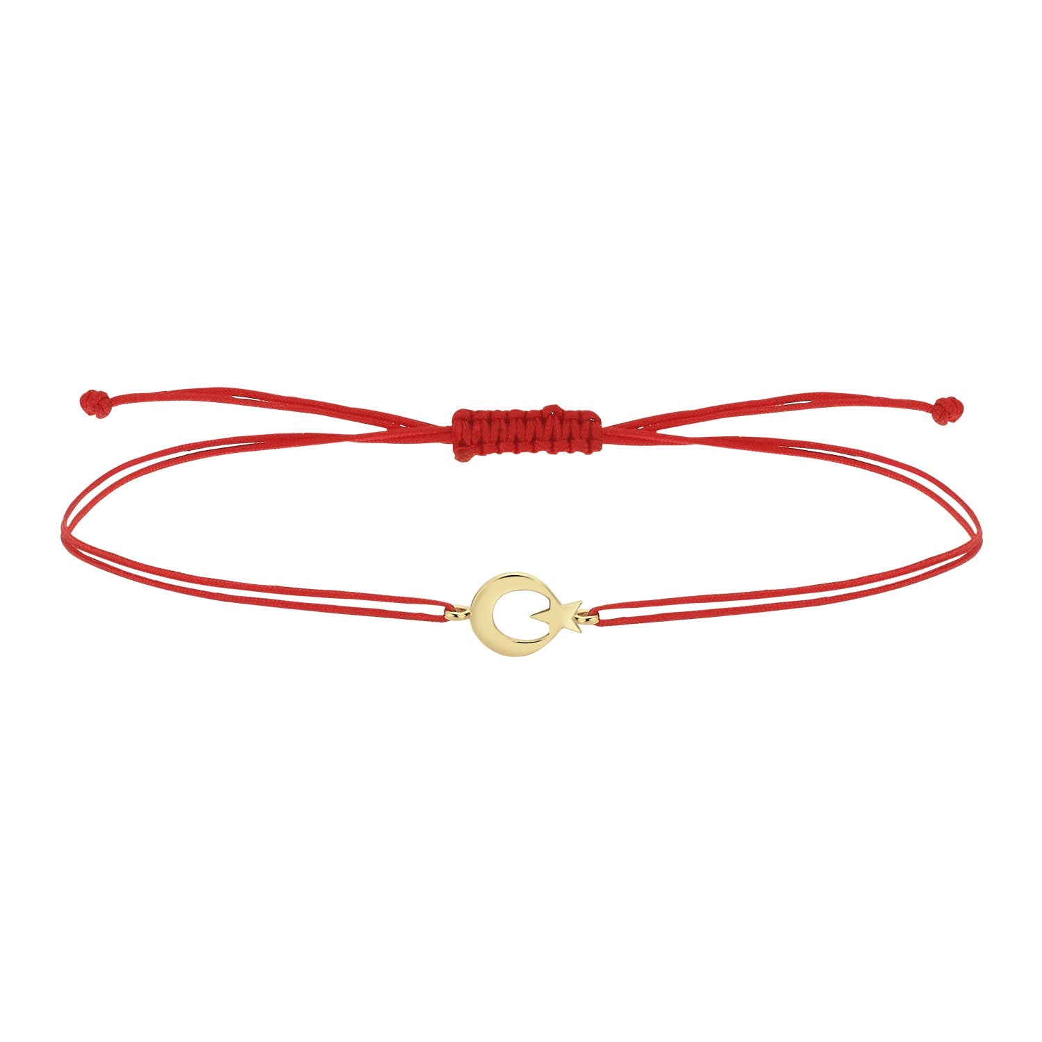 Hems Jewellery 14 Ayar Altın Ay Yıldız Cumhuriyet Kırmızı İp Bileklik