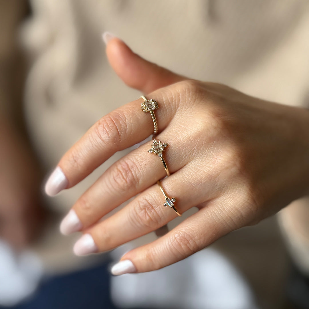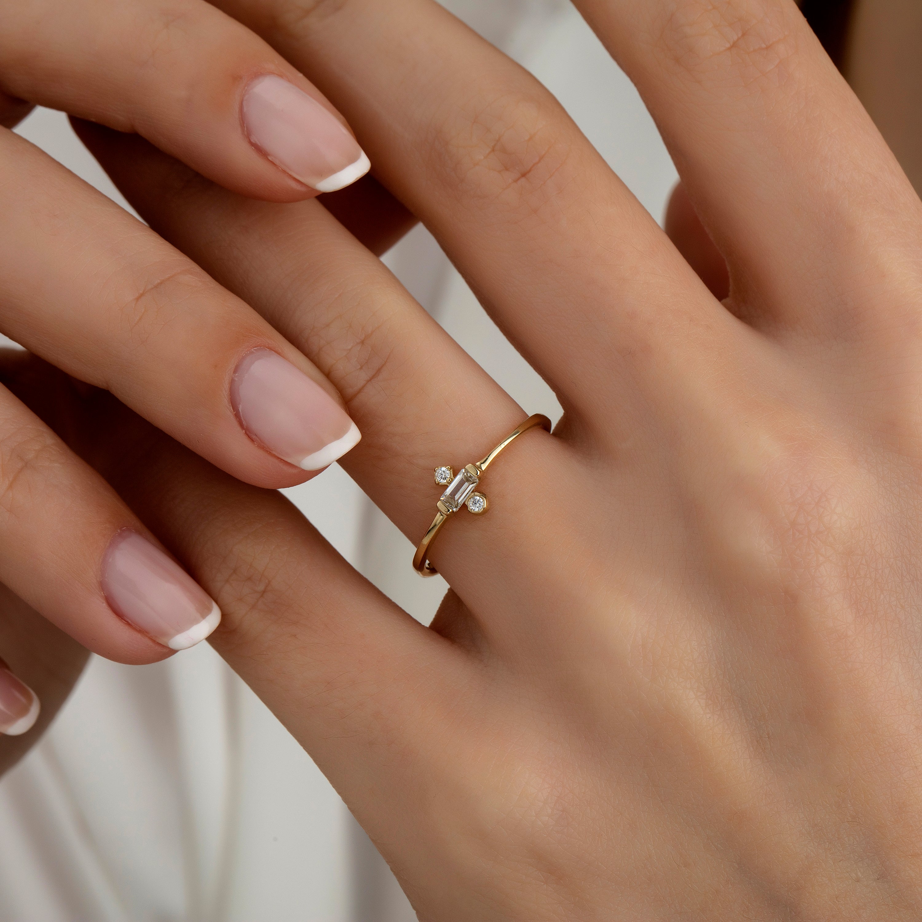 Hems Jewellery Altın Minimal Kombinlenebilir Baget Yüzük