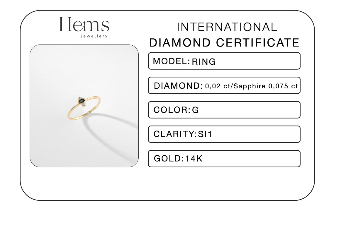 Hems Jewellery 14 Ayar Baget Safir Pırlanta Yüzük