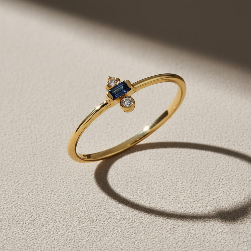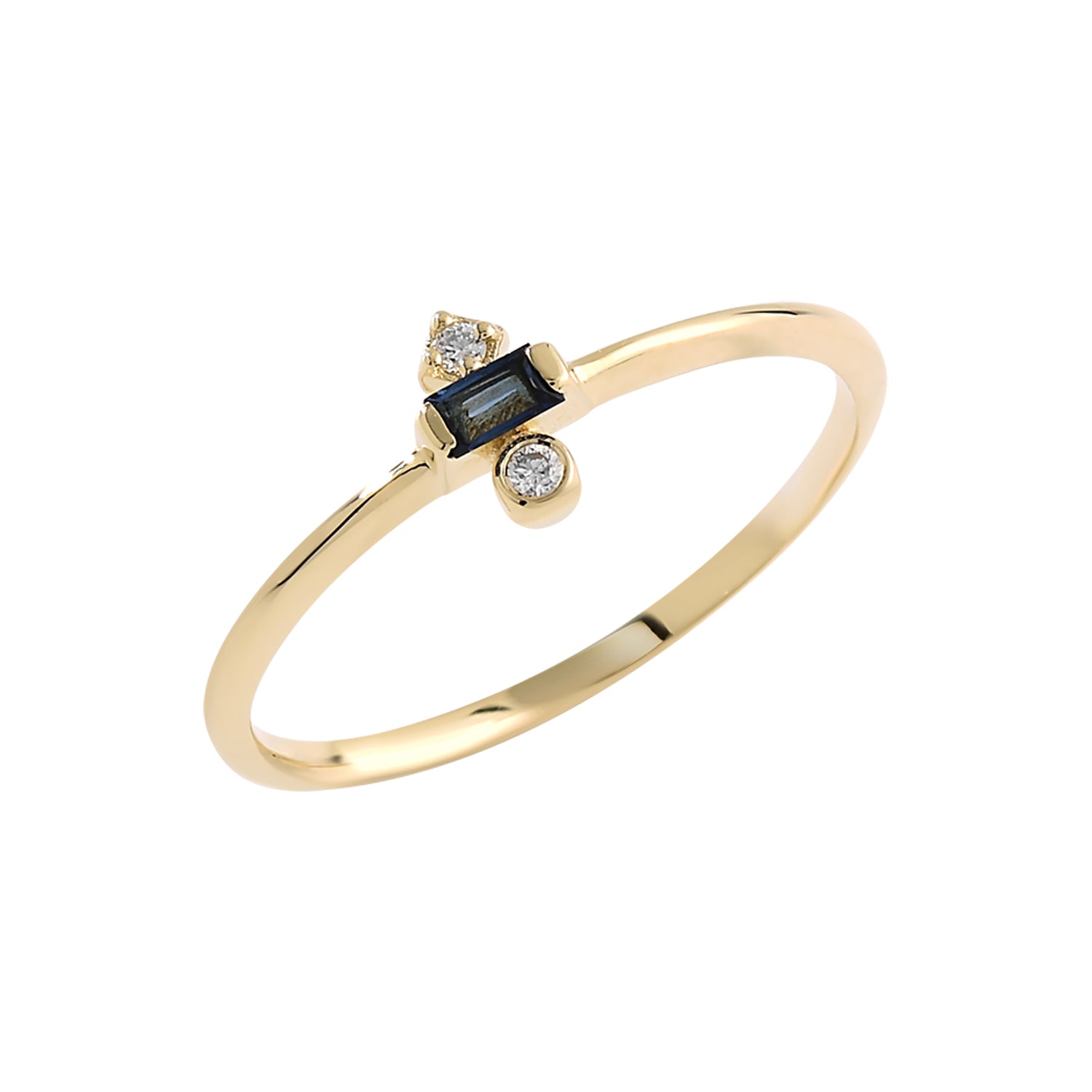 14 Ayar Altın Baget Safir Pırlanta Yüzük