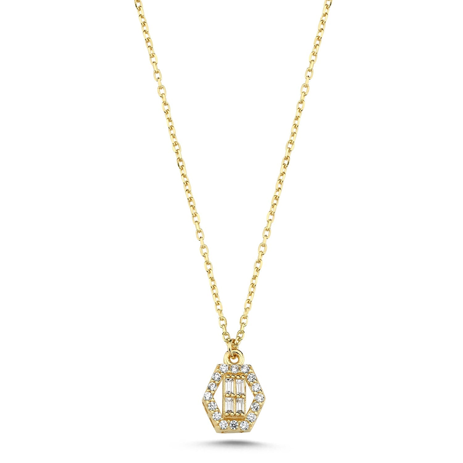 14 Ayar Altın Baget Taşlı Altıgen Kolye