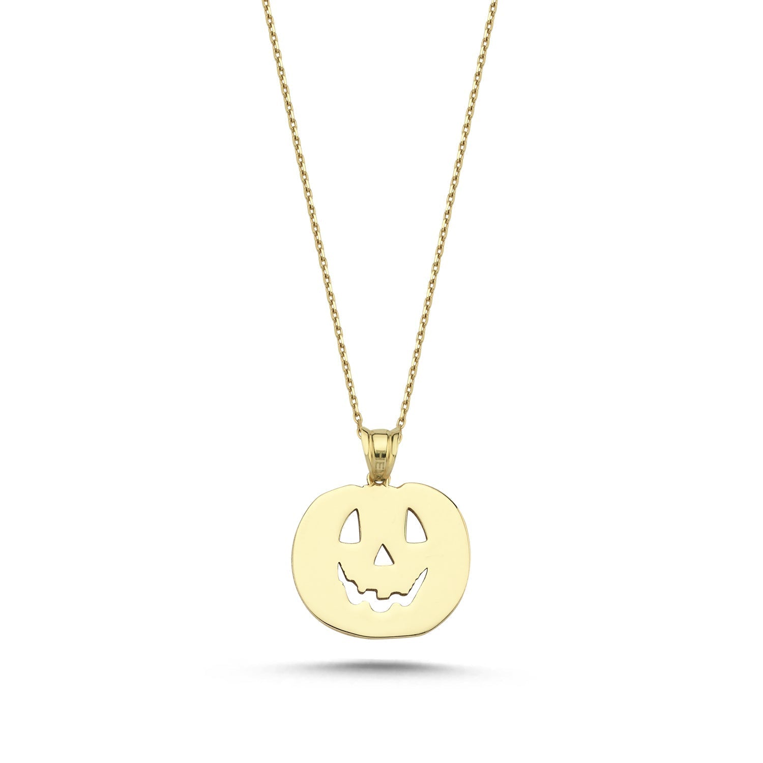 14 Ayar Altın Gülümseyen Balkabağı Cadılar Bayramı Kolye