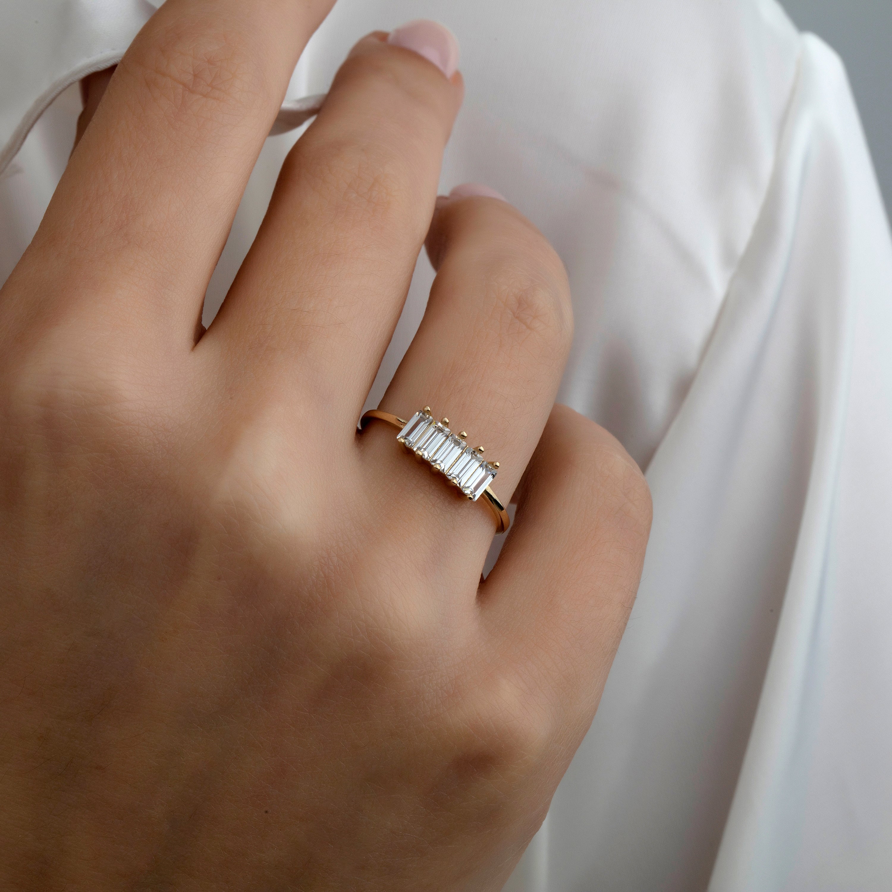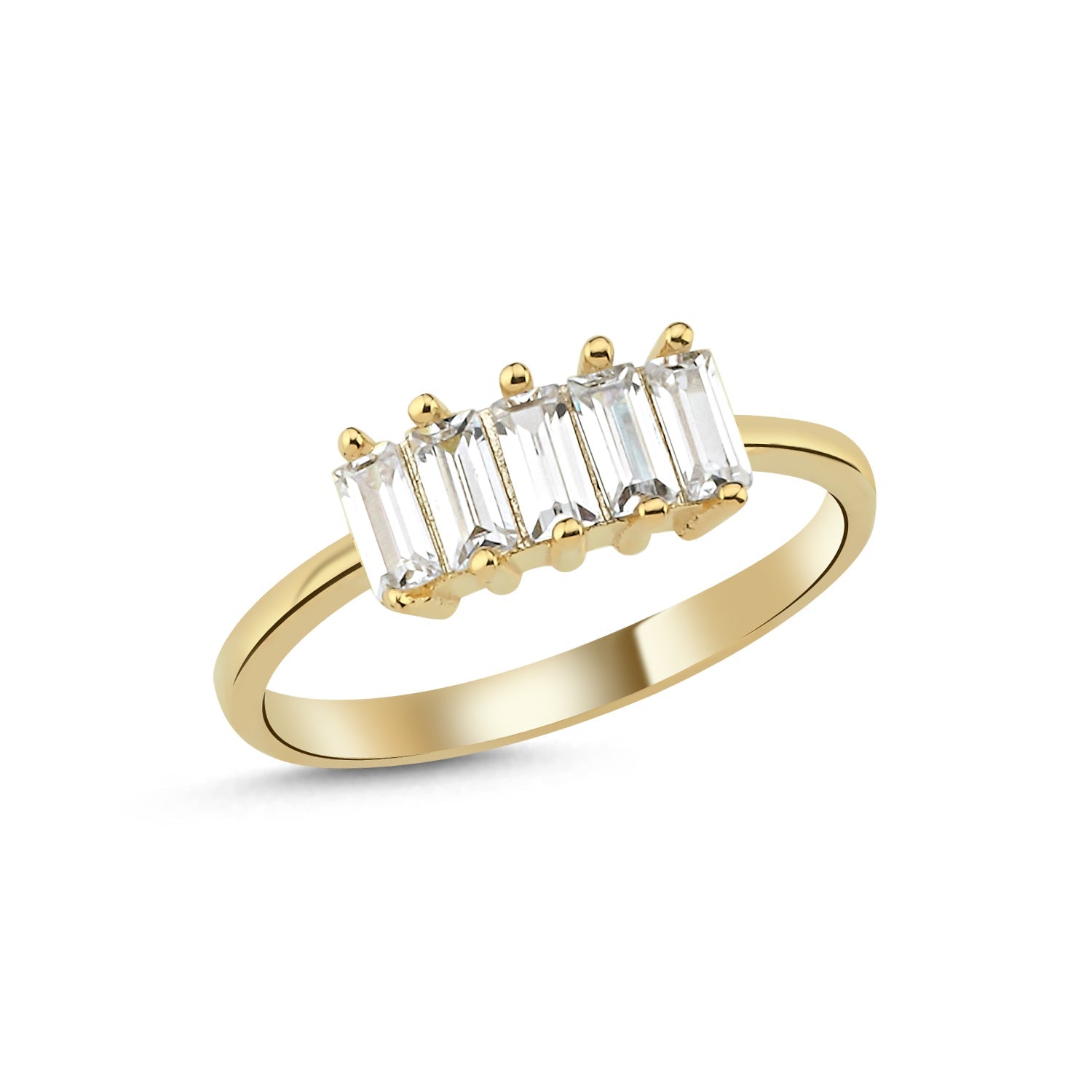 14 Ayar Altın Beş Taşlı Baget Yüzük