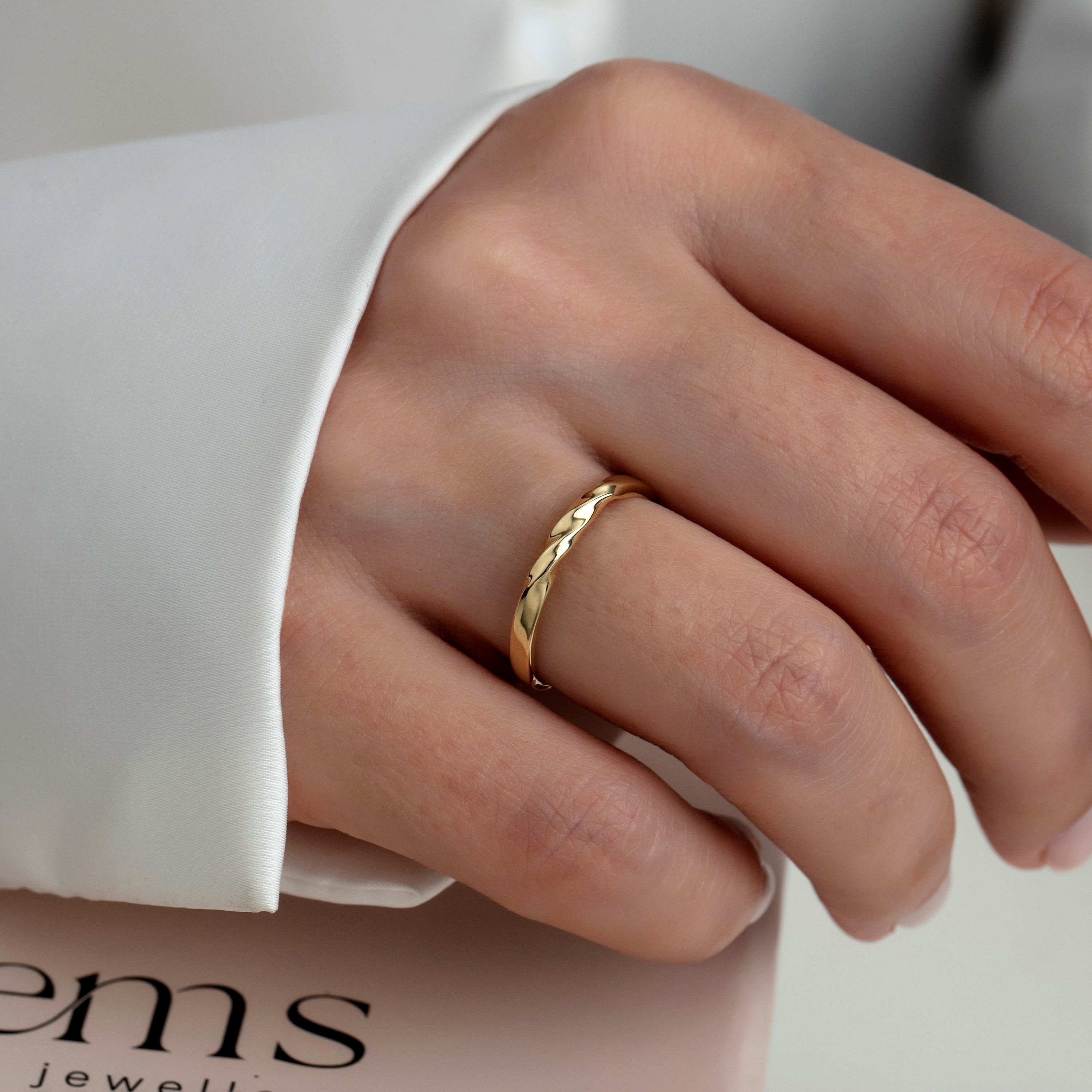 Hems Jewellery Altın Burgulu Kombinlenebilir Minimal Yüzük Zarif