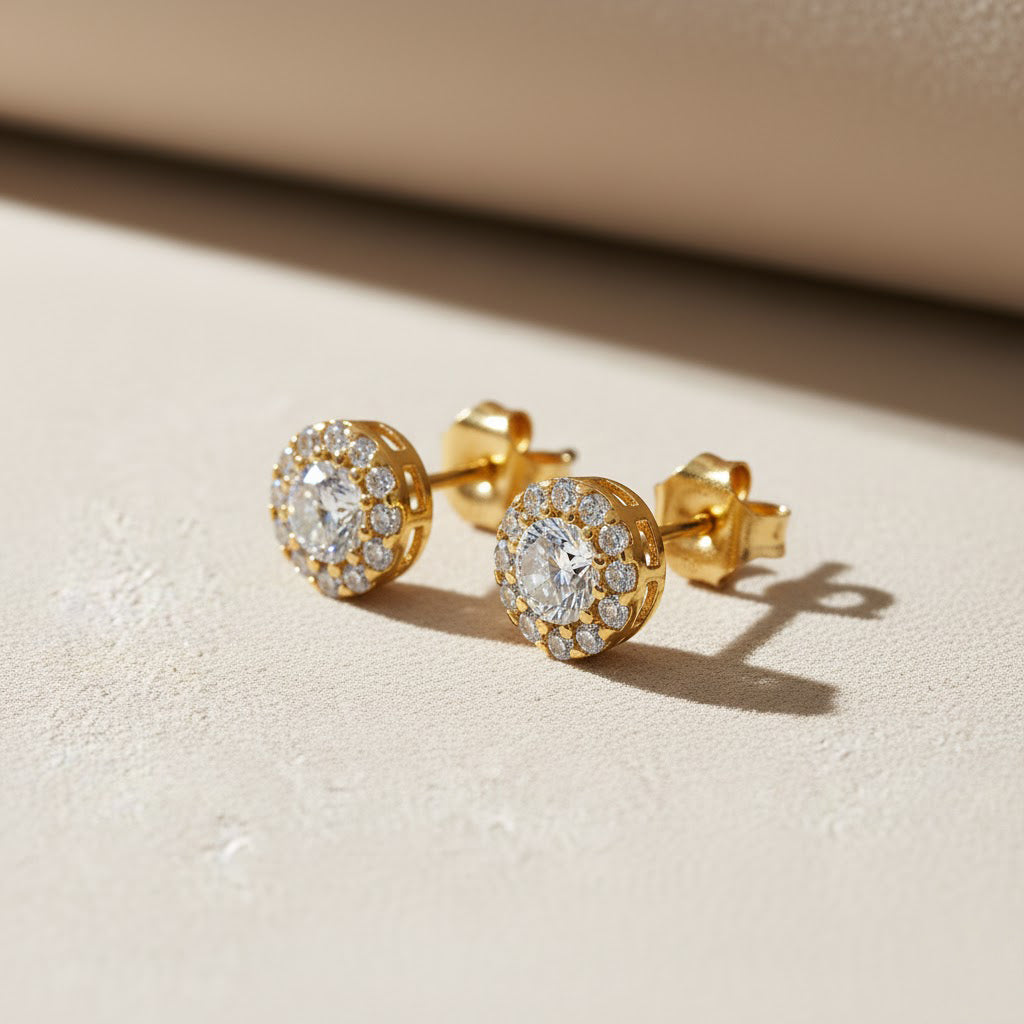 14 Ayar Altın Büyük Taşlı Çivi Küpe