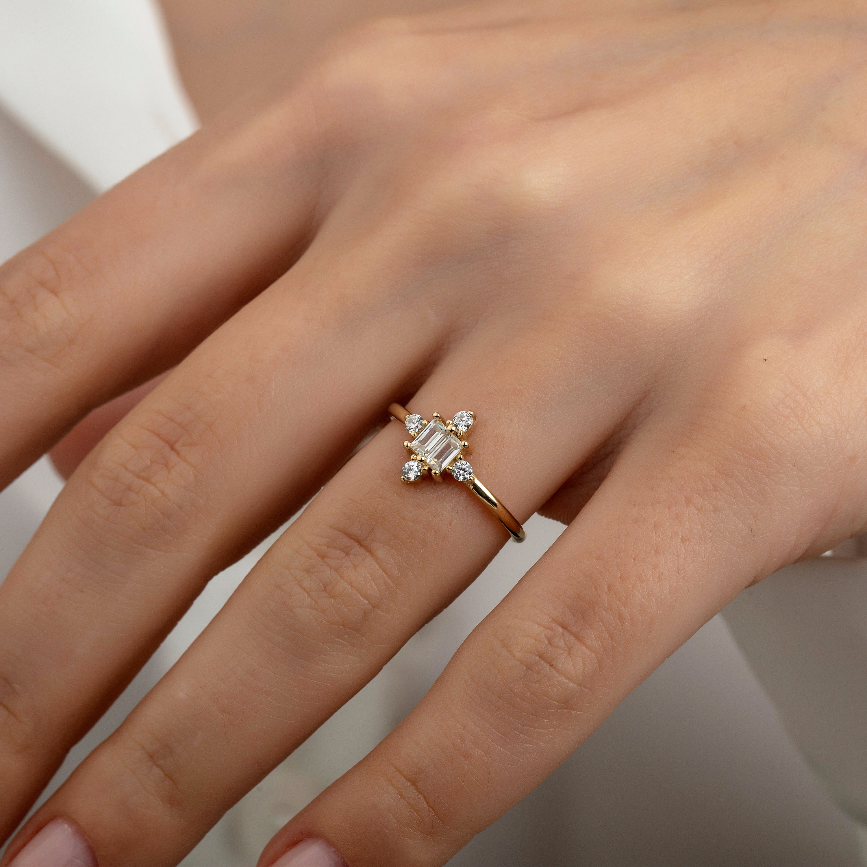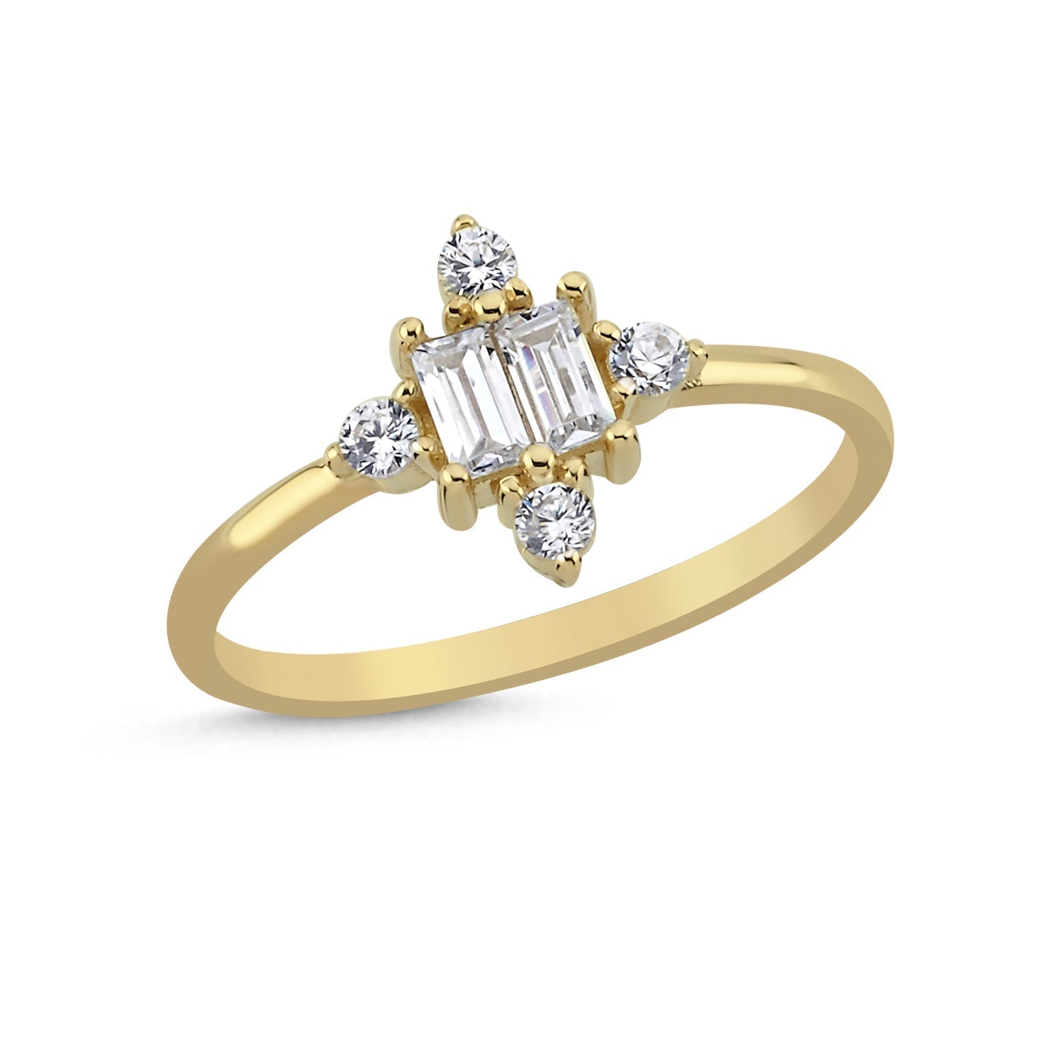 Hems Jewellery Altın Baget Kombinlenebilir Minimal Yüzük Dörtlüsü