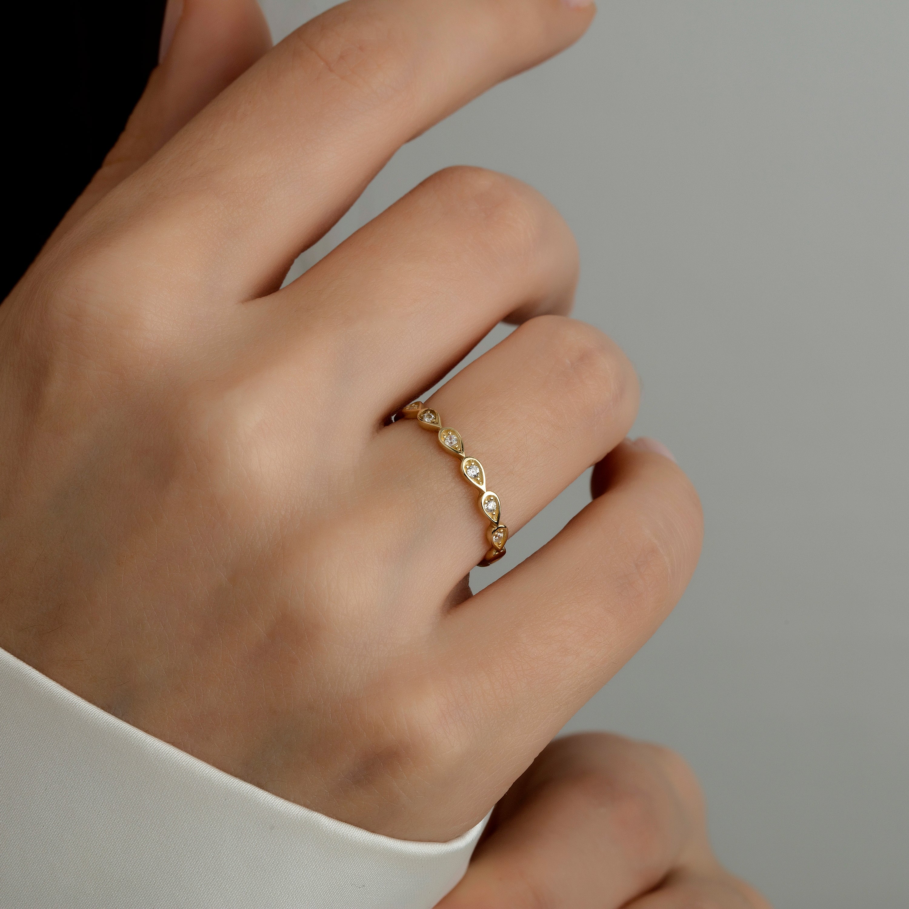 14 Ayar Altın Damla Kombinlenebilir Minimal Yüzük