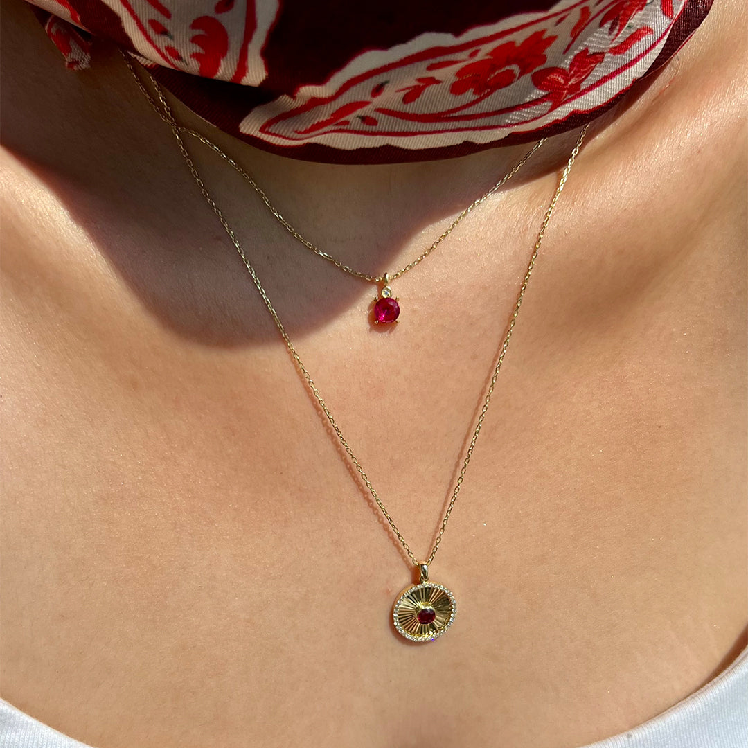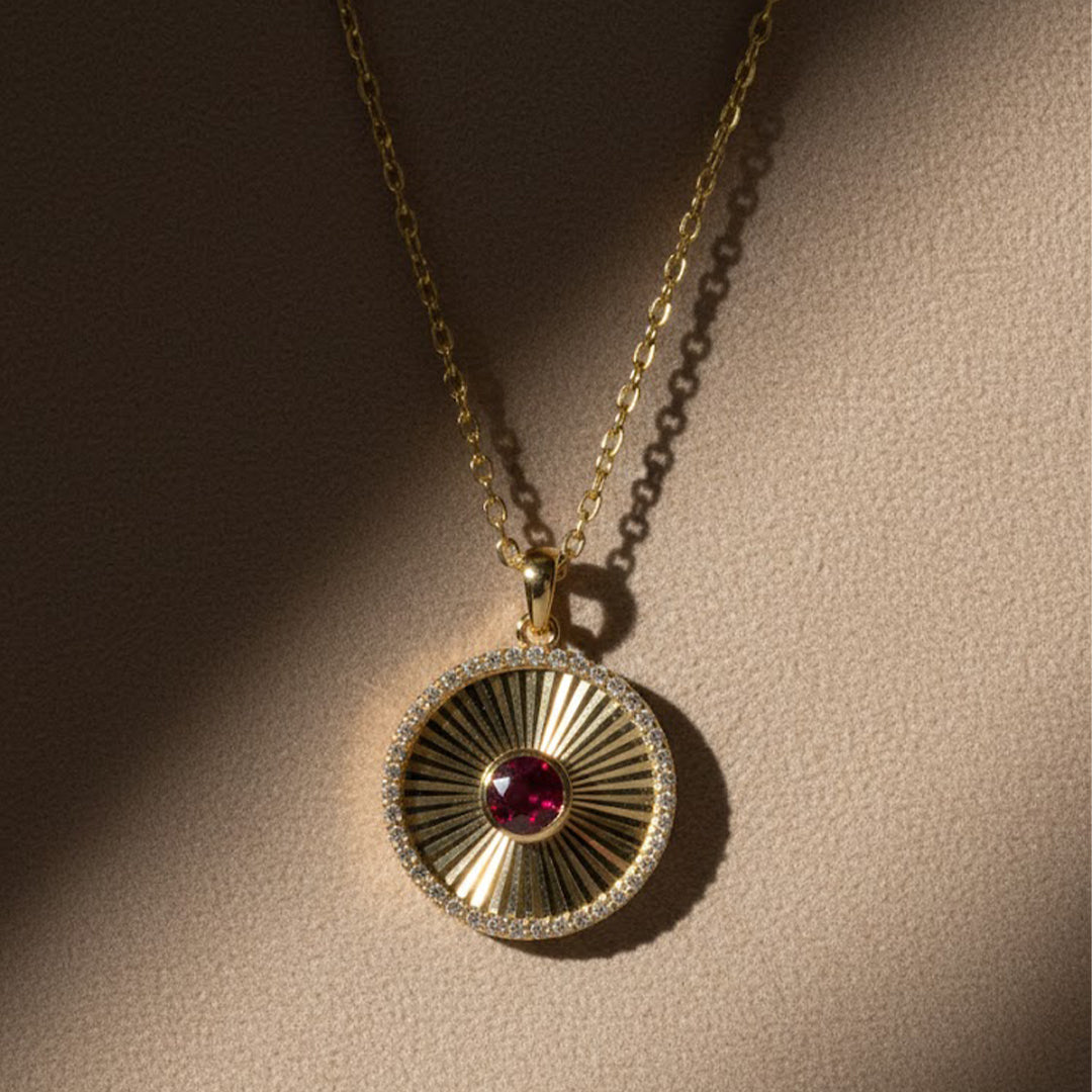 14 Ayar Altın Disc Ray Difüzyon Yakut Taş Pırlanta Madalyon Kolye