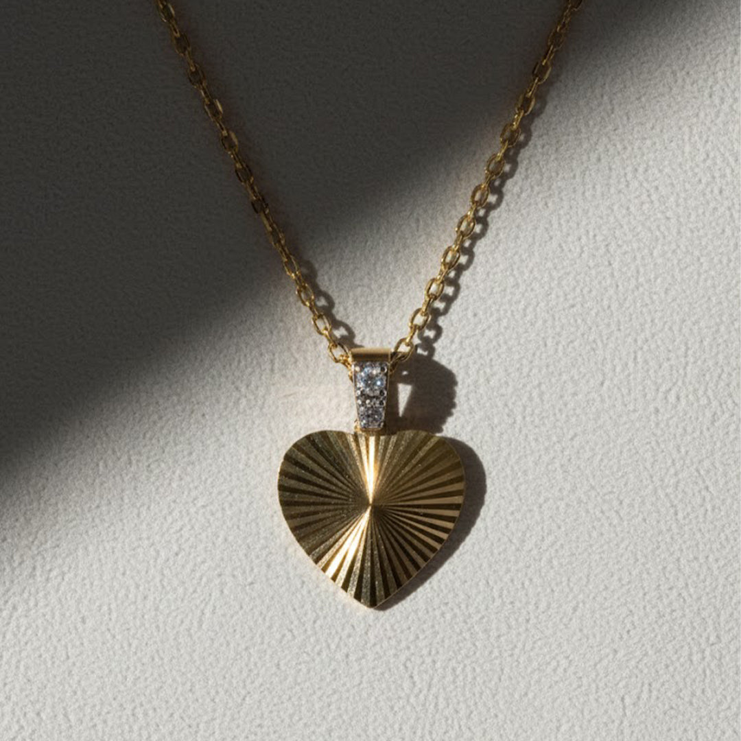 14 Ayar Altın Disc Ray Pırlanta Kalp Kolye