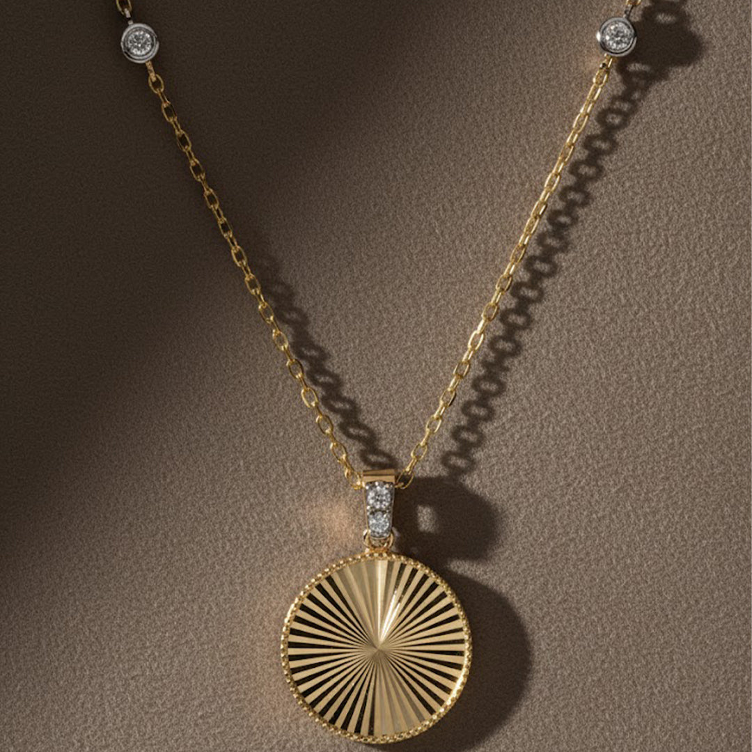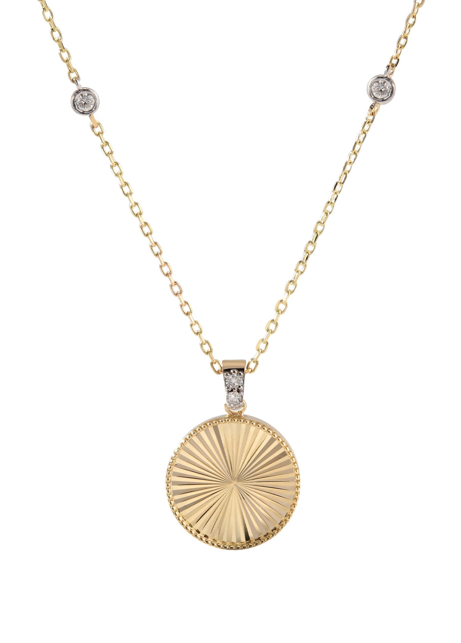 14 Ayar Altın Disc Ray Çift Pırlanta Kolye