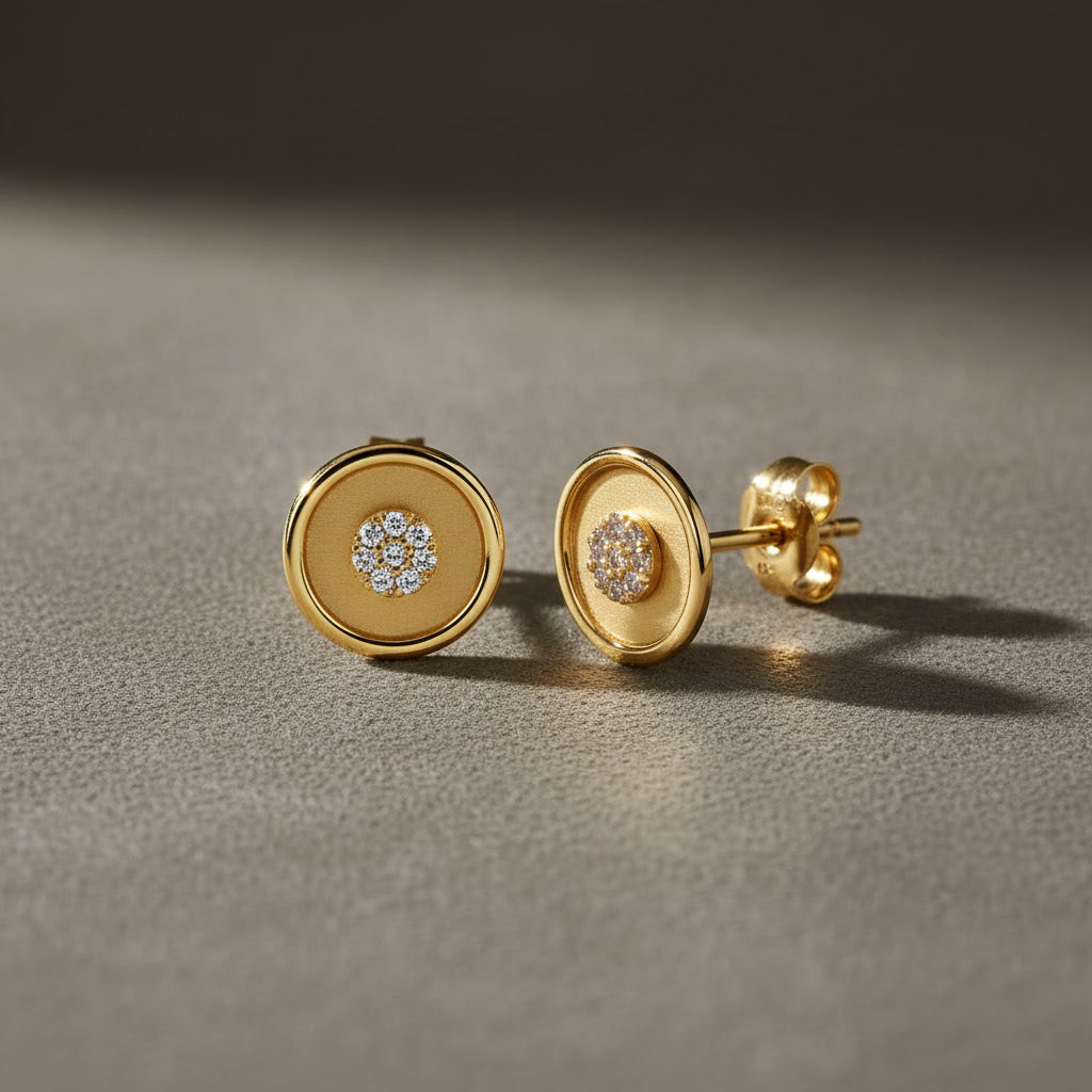 14 Ayar Altın Dokulu Taşlı Küpeler