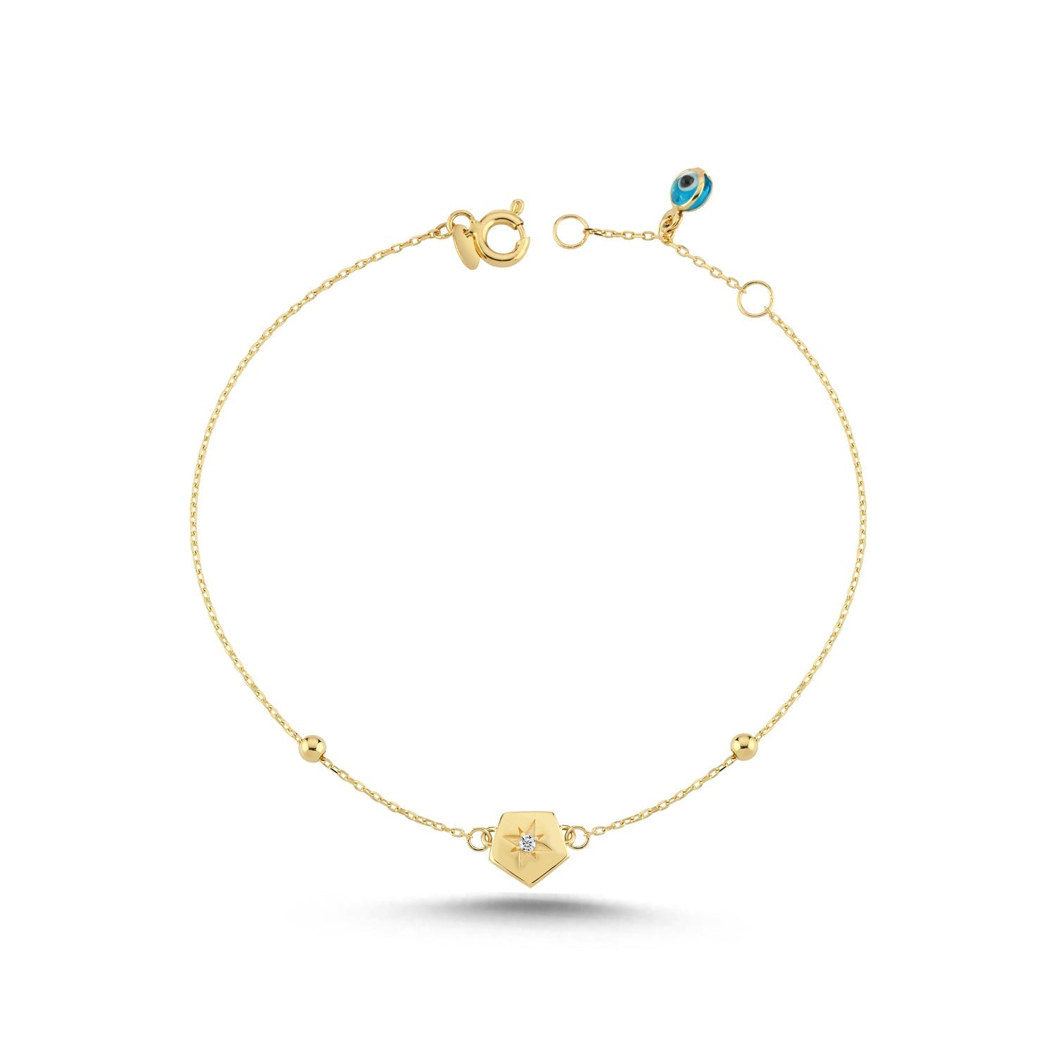 14 Ayar Altın Altıgen Kuzey Yıldızı Bileklik
