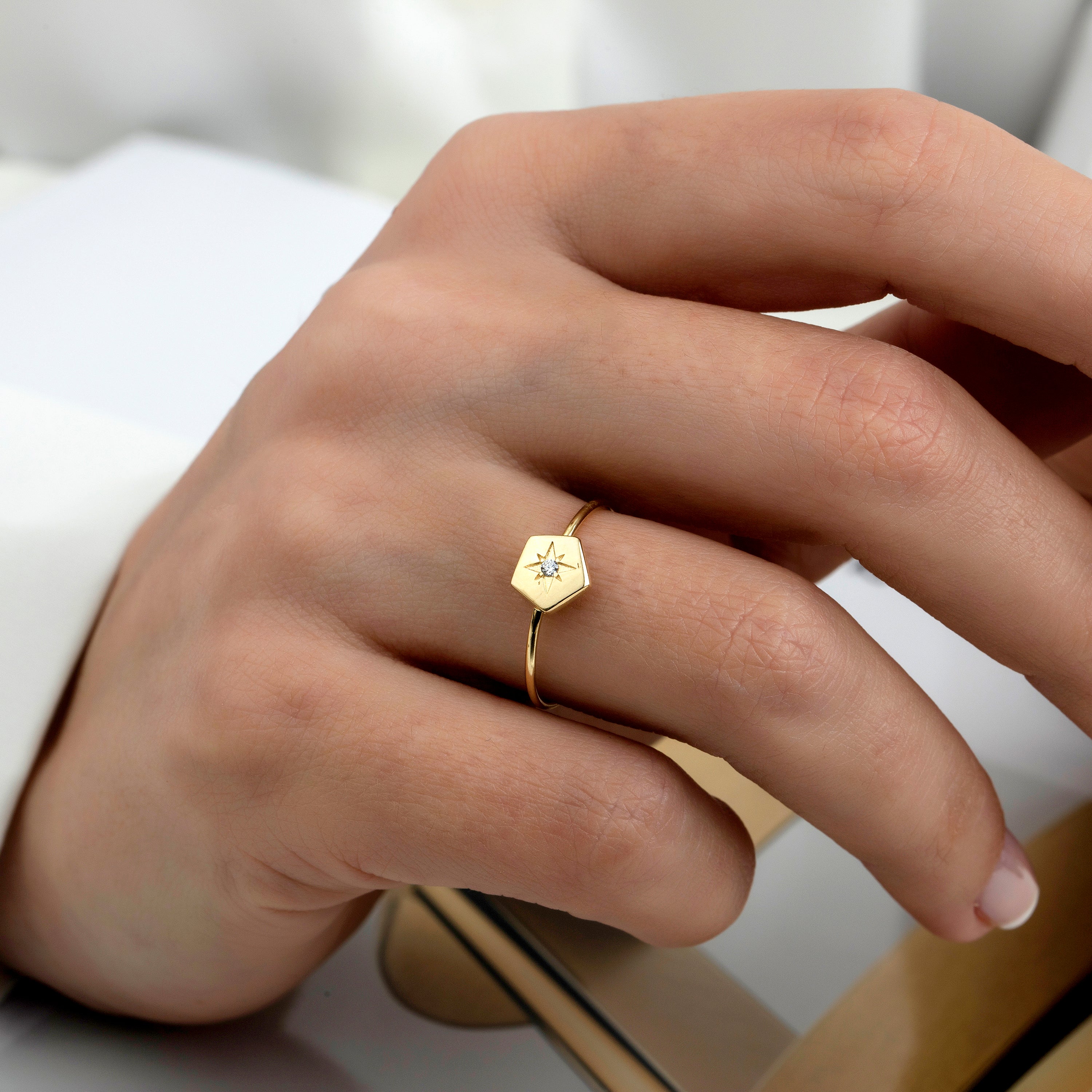 Hems Jewellery Altıgen Kuzey Yıldızı Yüzük