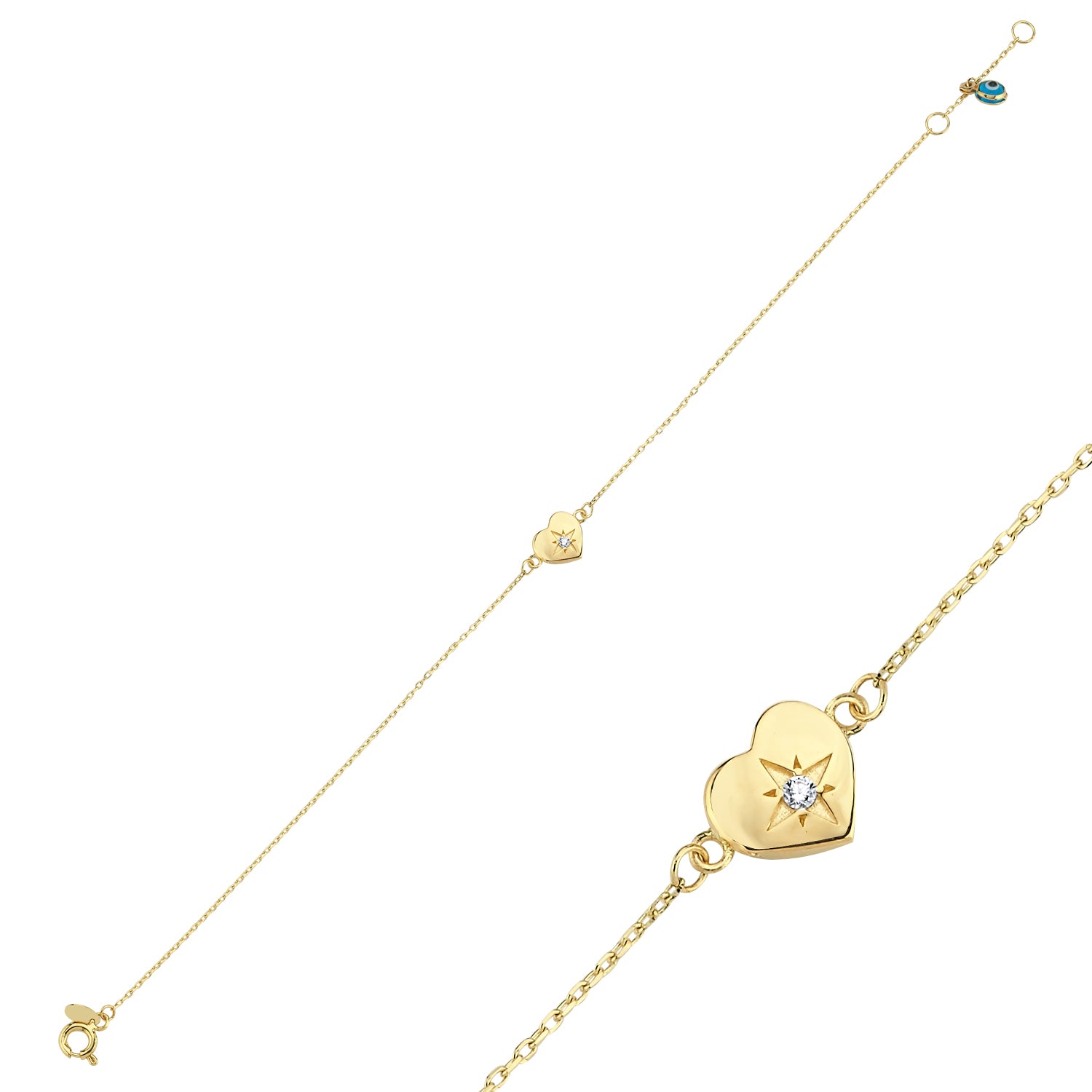 14 Ayar Altın Kalpli Kuzey Yıldızı Bileklik