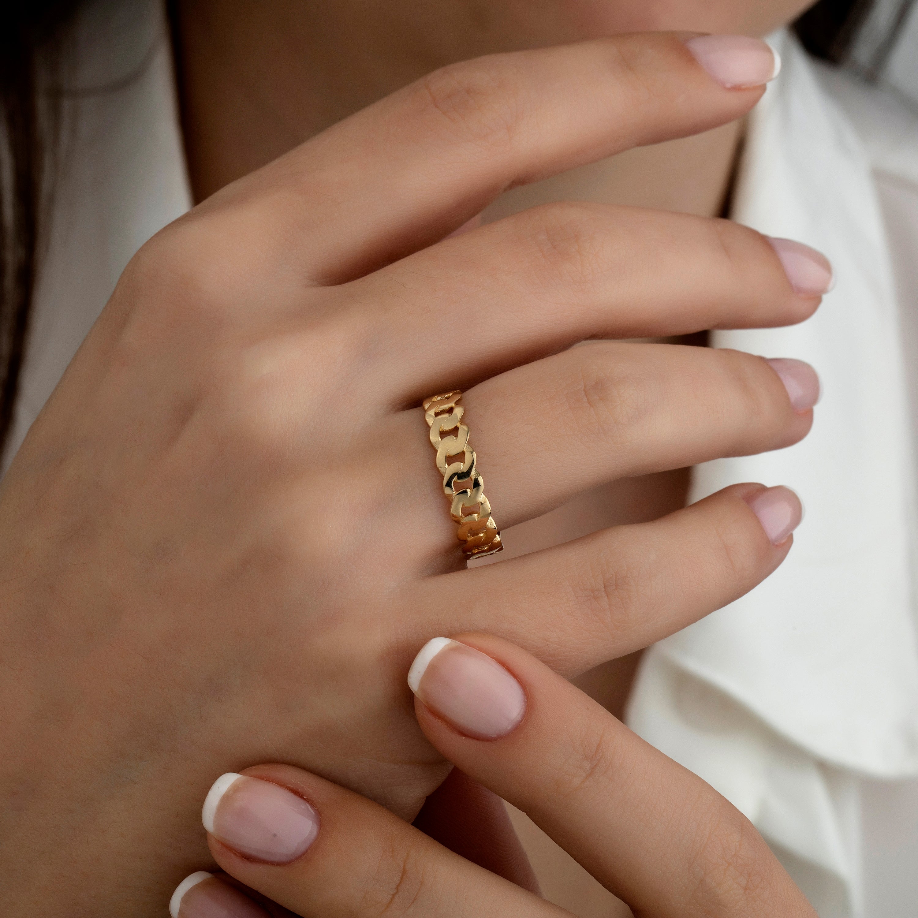 14 Ayar Altın Ezme Gurme Zincir Yüzük