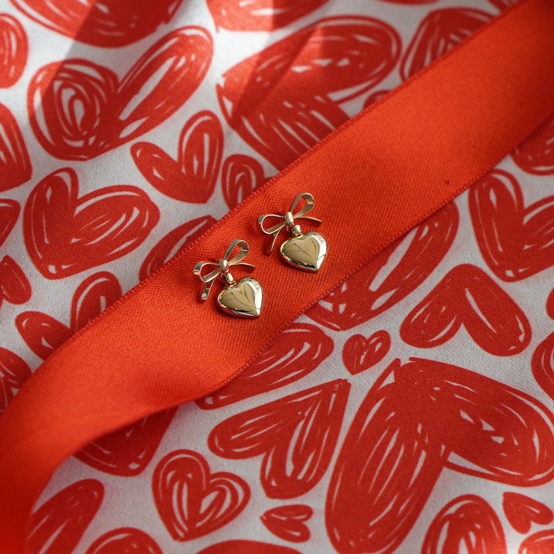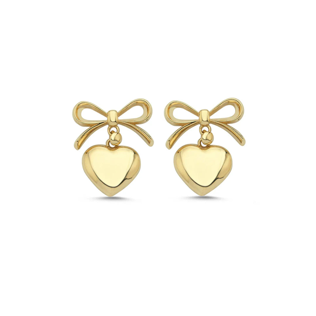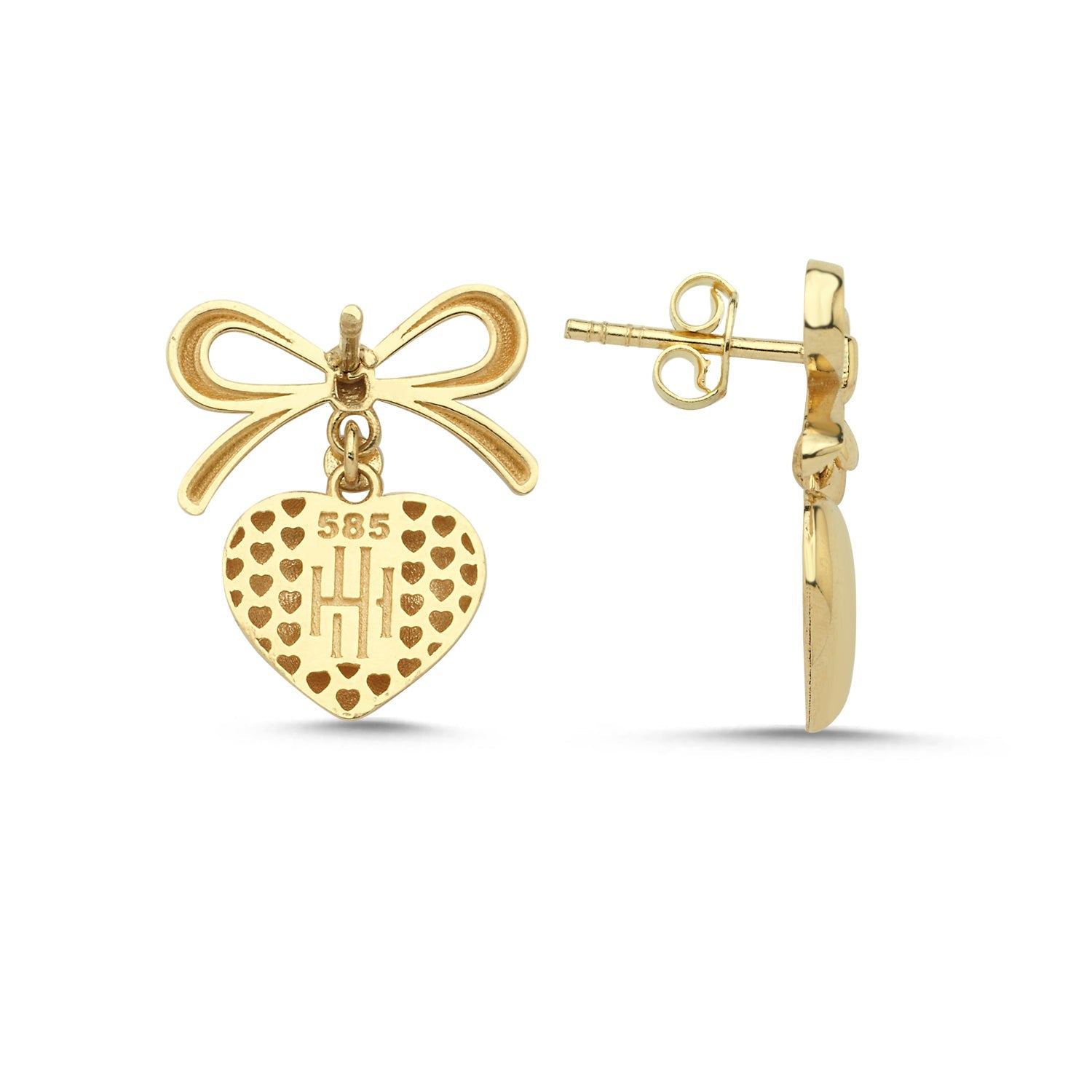 14 Ayar Altın Fiyonklu Kalp Küpe