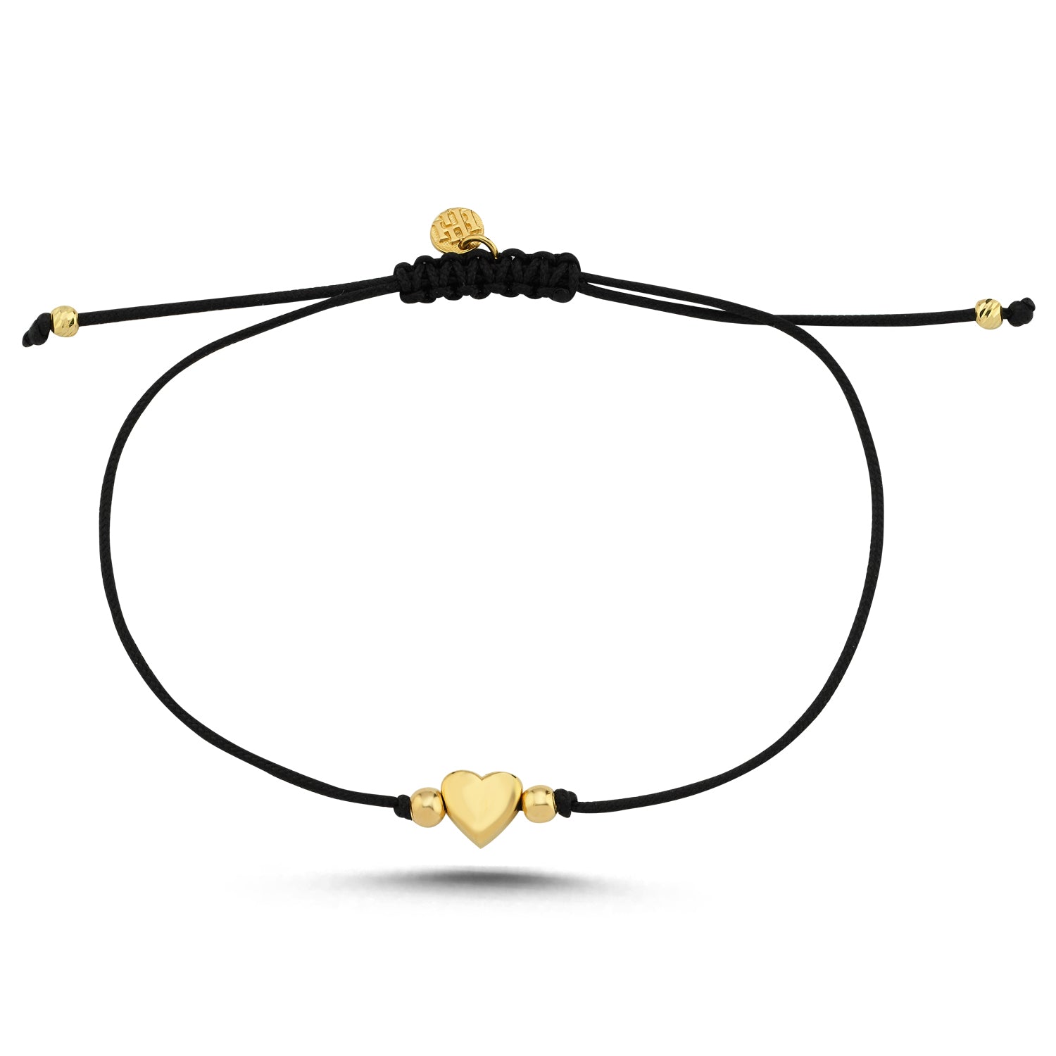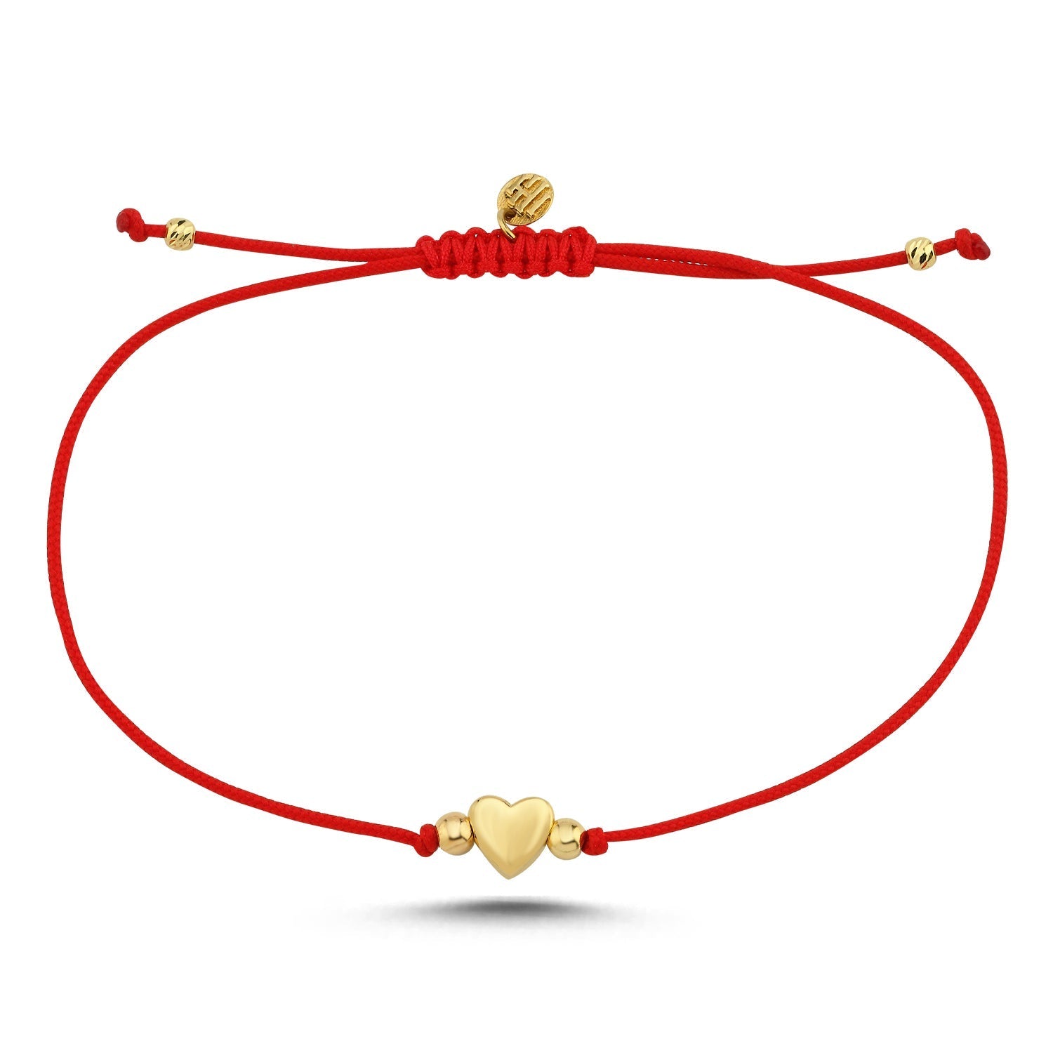 14 Ayar Altın İpli Altın Boncuklu Kalp Bileklik