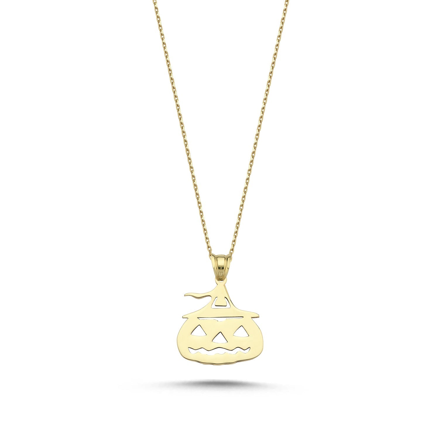 14 Ayar Altın Korkunç Kabak Balkabağı Cadılar Bayramı Kolye