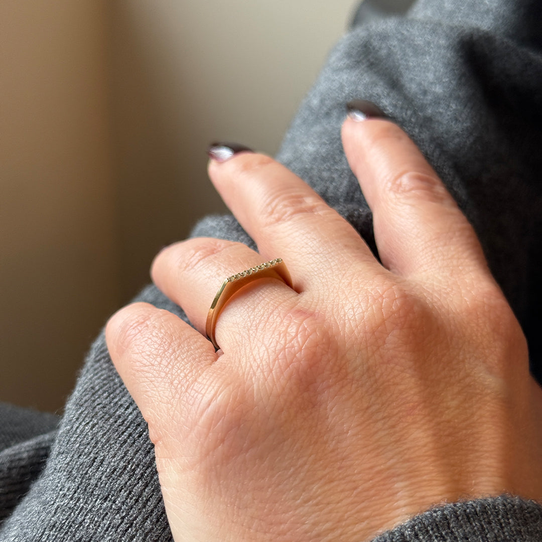 Hems Jewellery Altın Köşeli Taşlı Kombinlenebilir Yüzük