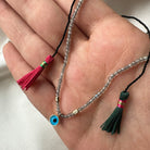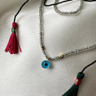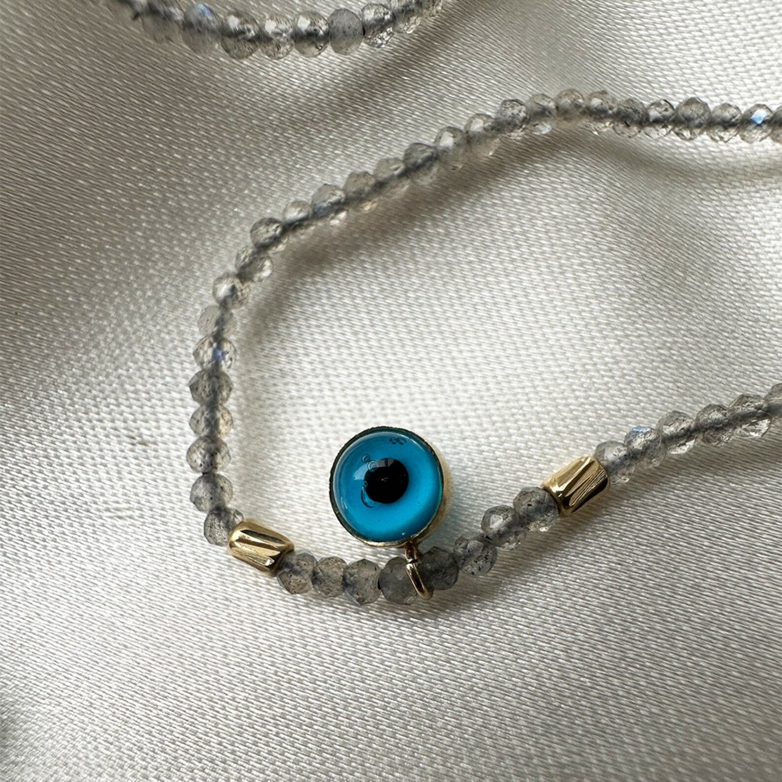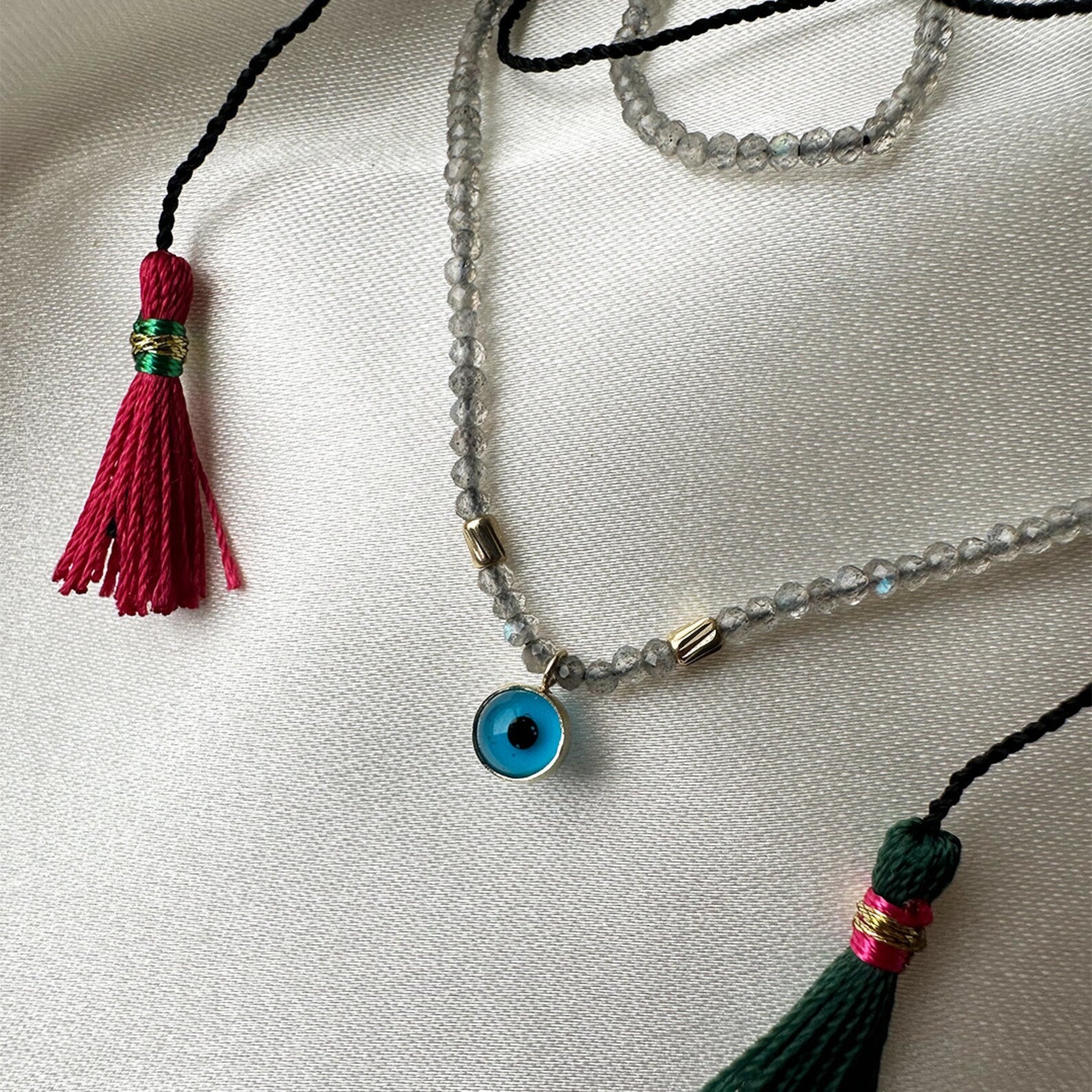 14 Ayar Altın Labradorit Taşlı Nazar Püsküllü Kolye