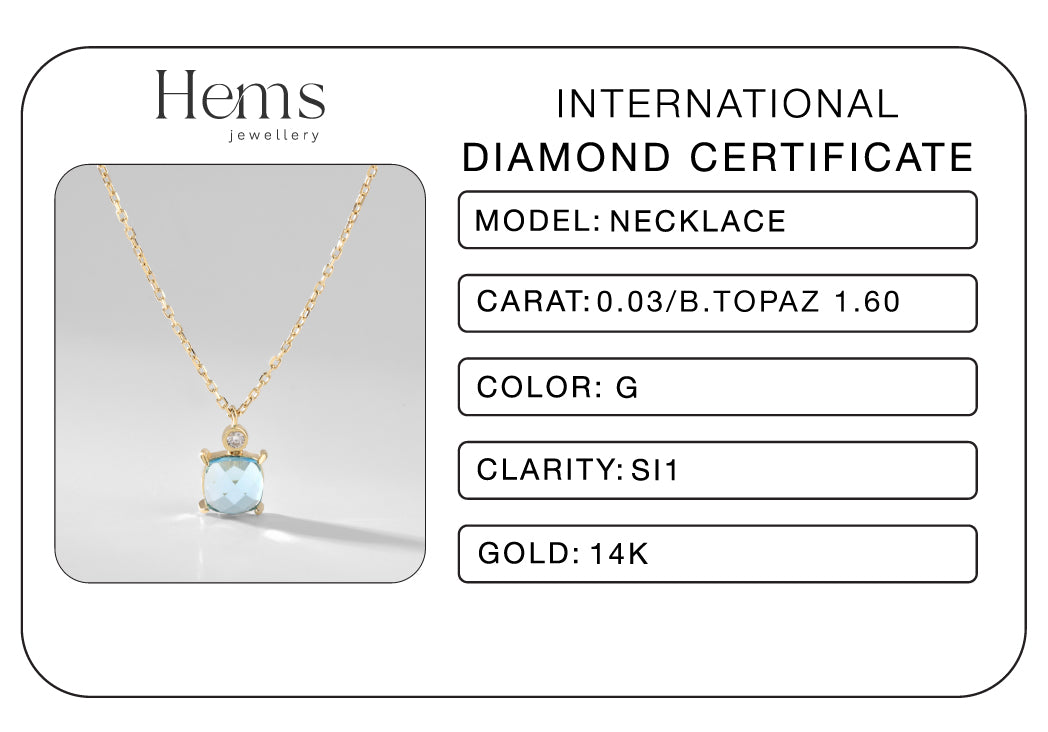 Hems Jewellery 14 Ayar Altın Topaz Pırlanta Kolye
