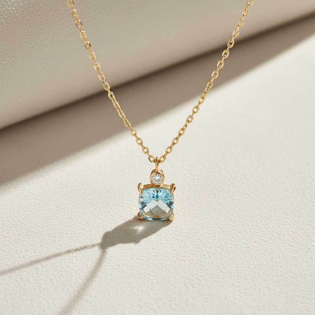 14 Ayar Altın Mavi Topaz Taşlı Pırlanta Kolye