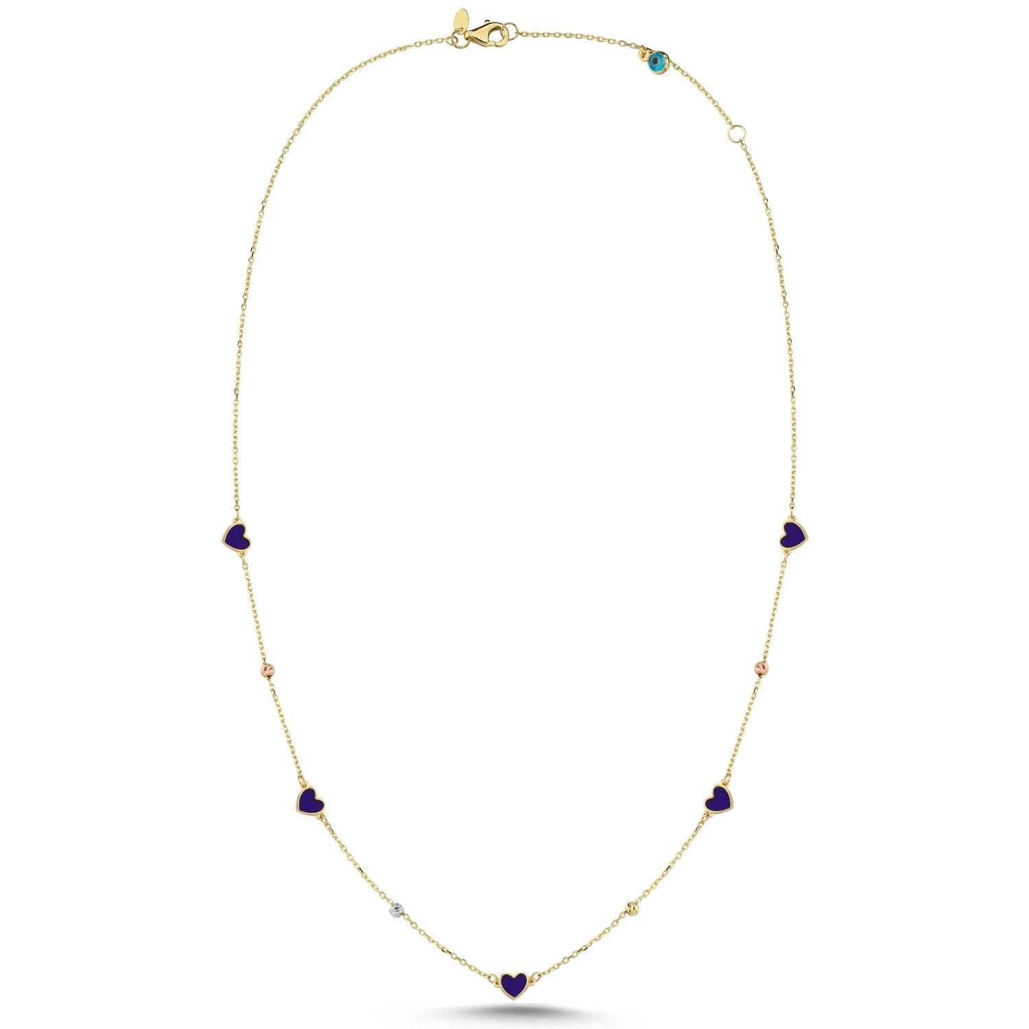 14 Ayar Altın Mineli Kalp Zincir Kolye