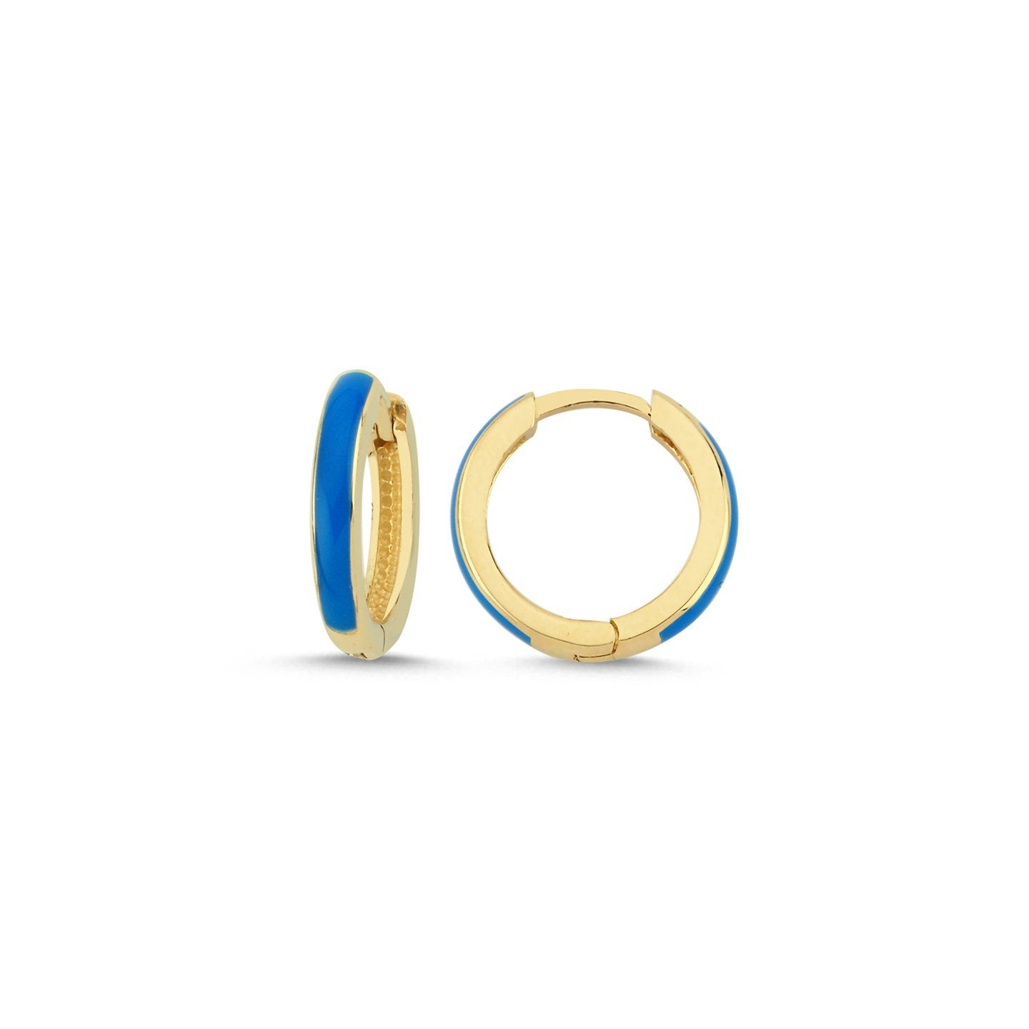14 Ayar Altın Mineli Mavi Halka Küpe