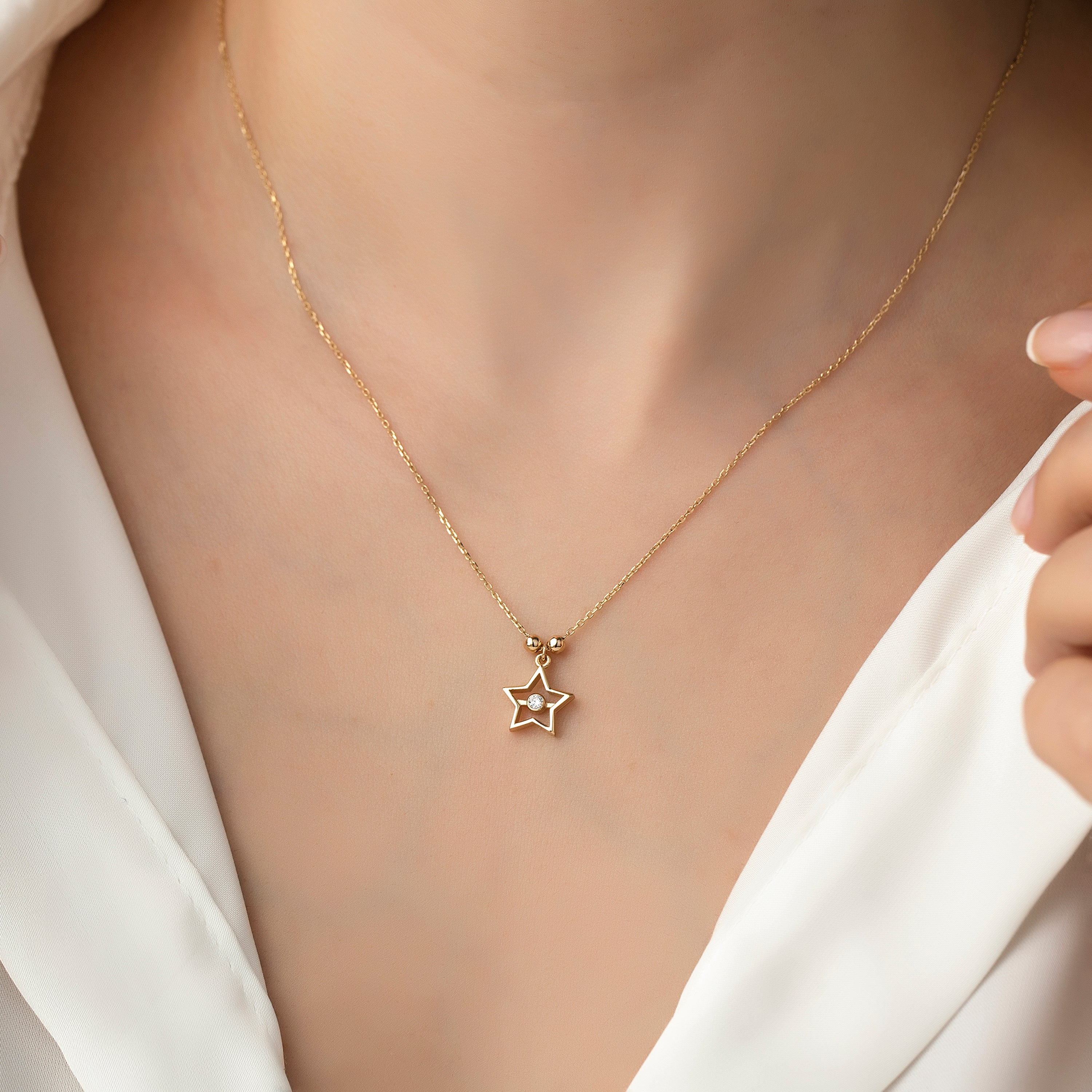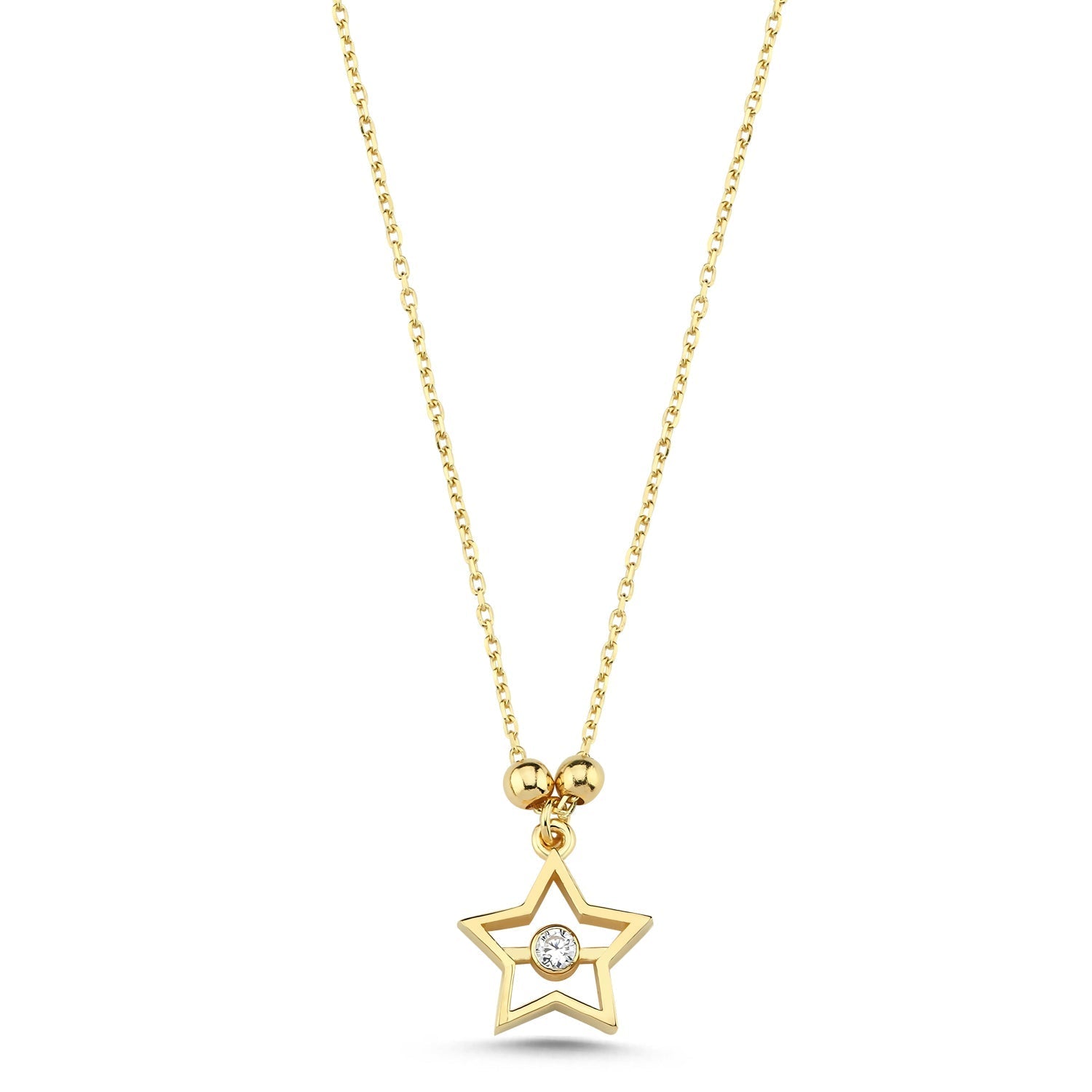 14 Ayar Altın Mini Yıldız Tek Taş Kolye