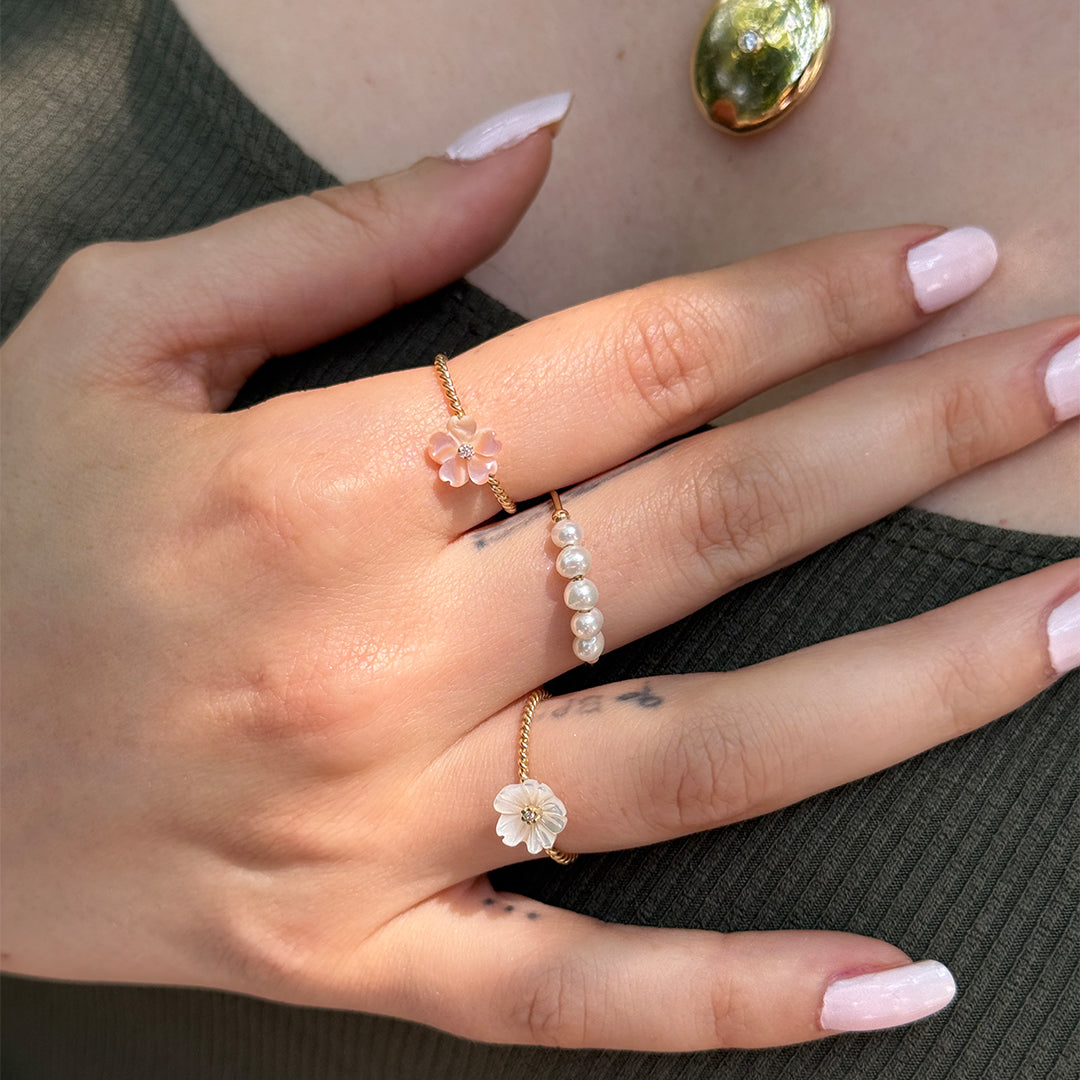 Hems Jewellery 14 Ayar Altın Minimal İnci Yüzük