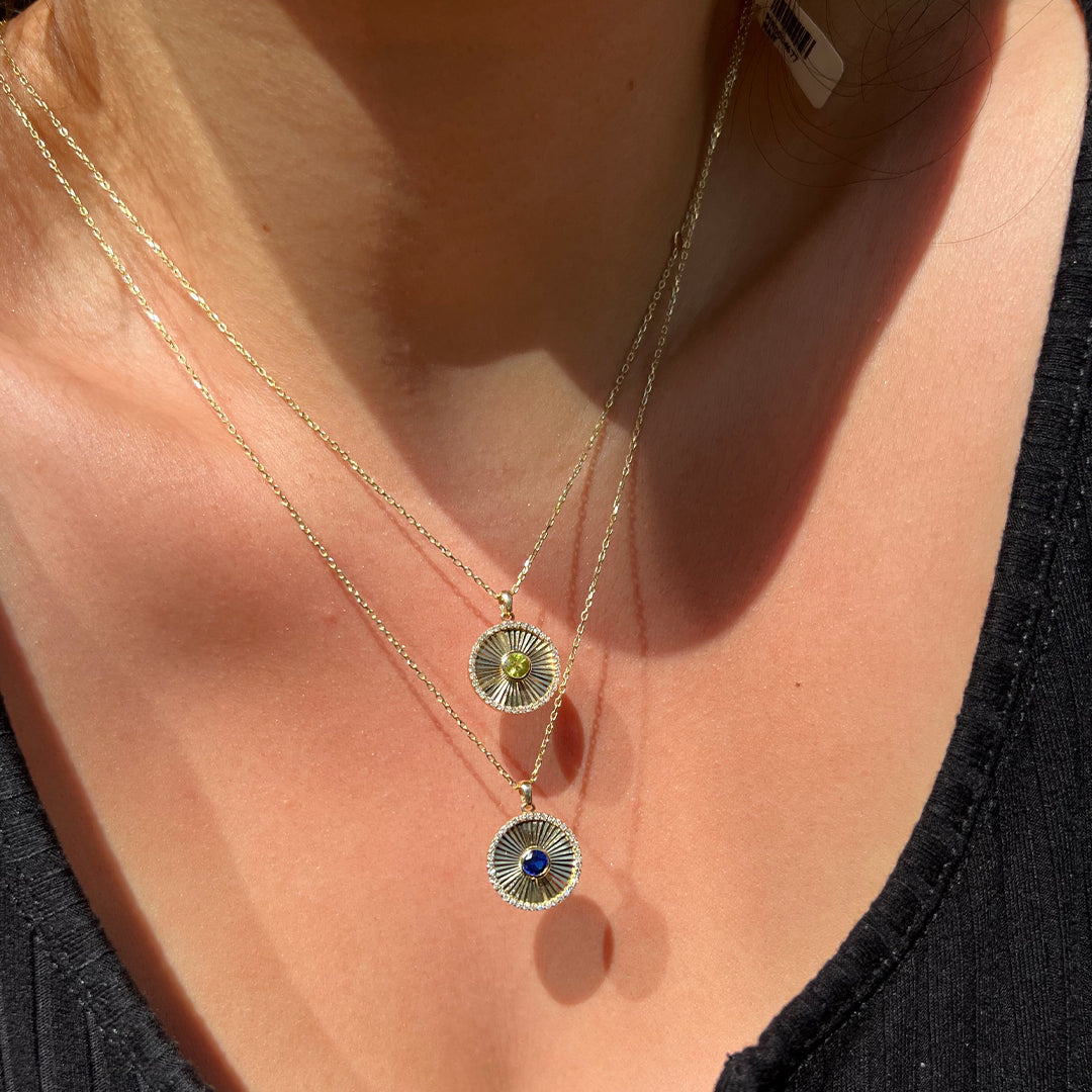 14 Ayar Altın Disc Ray Peridot Taşlı Pırlanta Madalyon Kolye