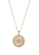 14 Ayar Altın Disc Ray Pırlanta Taşlı Madalyon Kolye