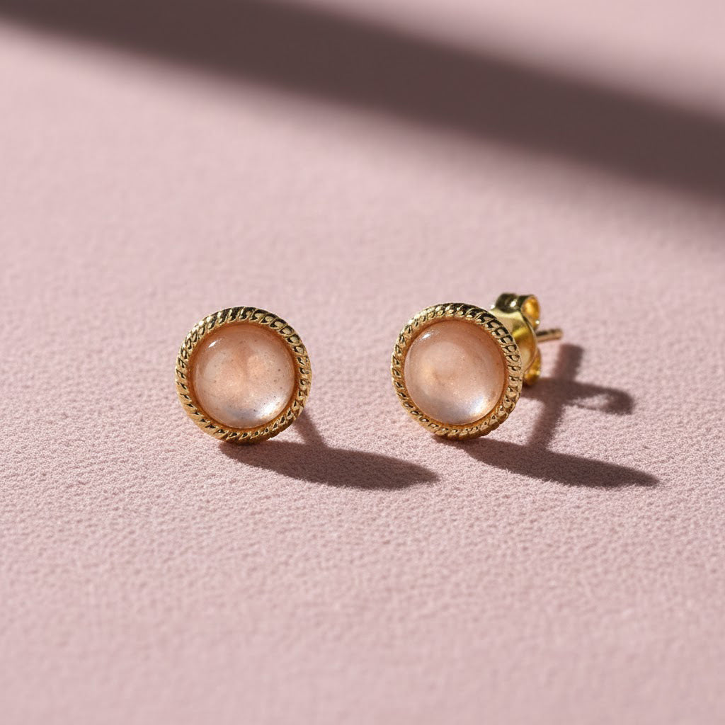 Hems Jewellery 14 Ayar Altın Sweet Rose Moonstone Doğal Taş Küpe