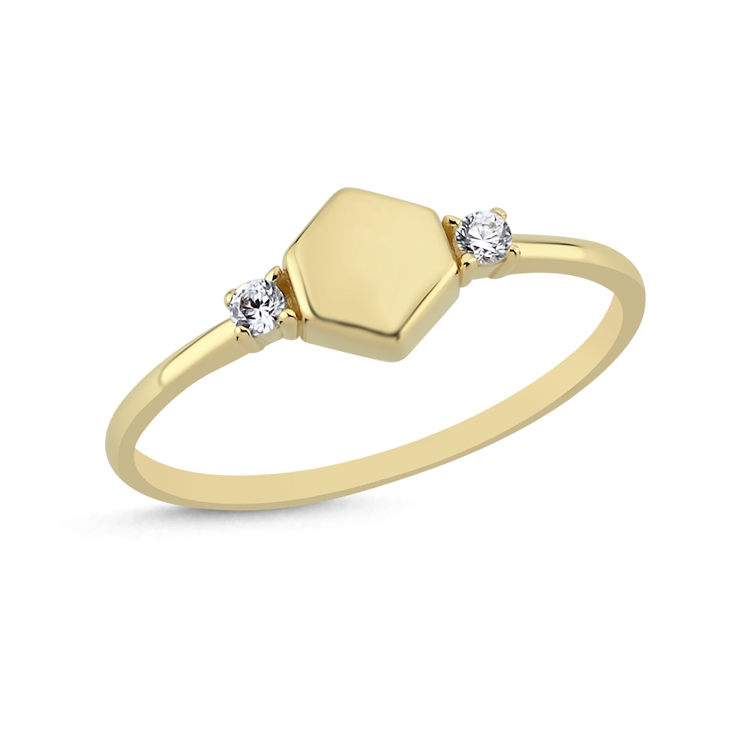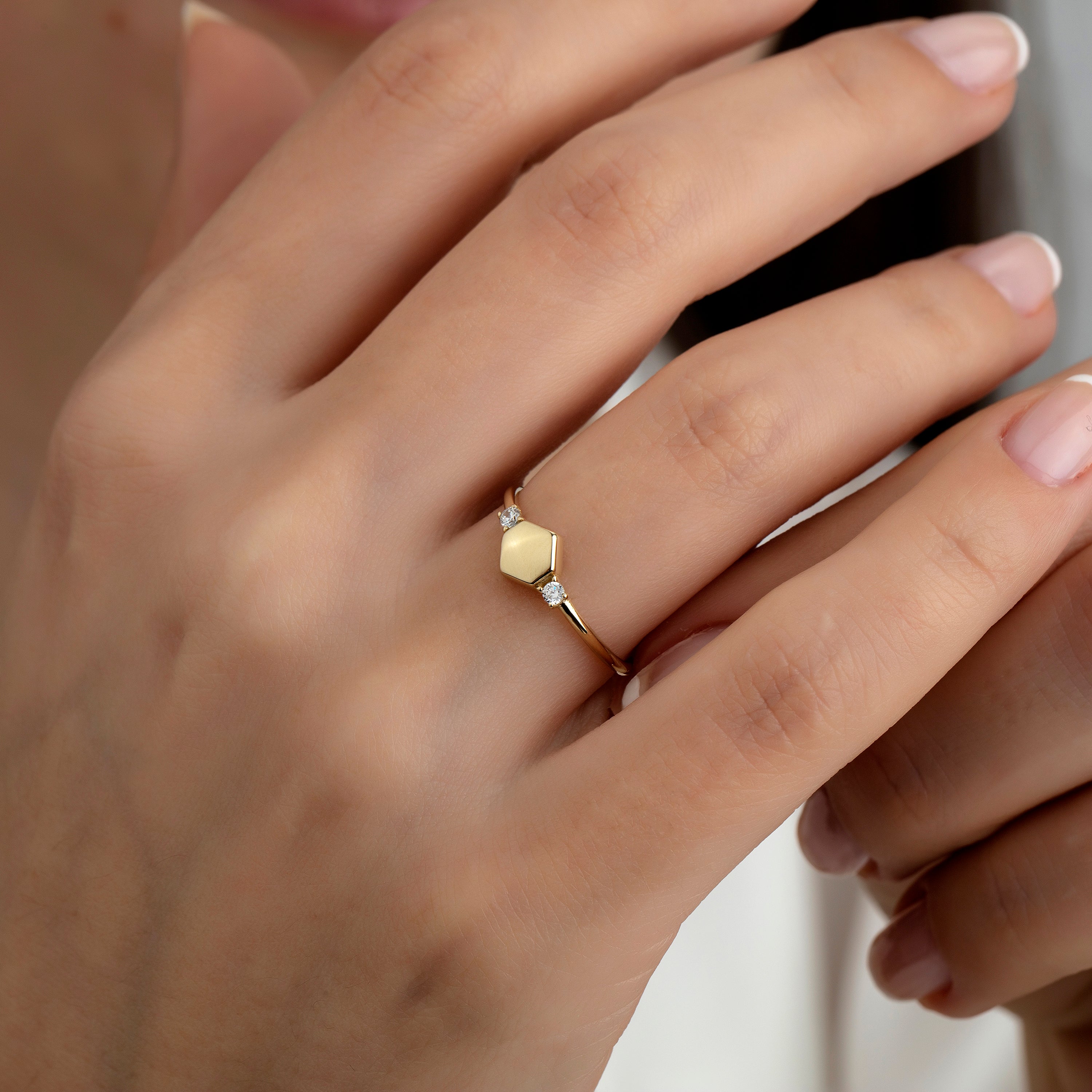 14 Ayar Altın Taşlı Altıgen Kombinlenebilir Minimal Yüzük