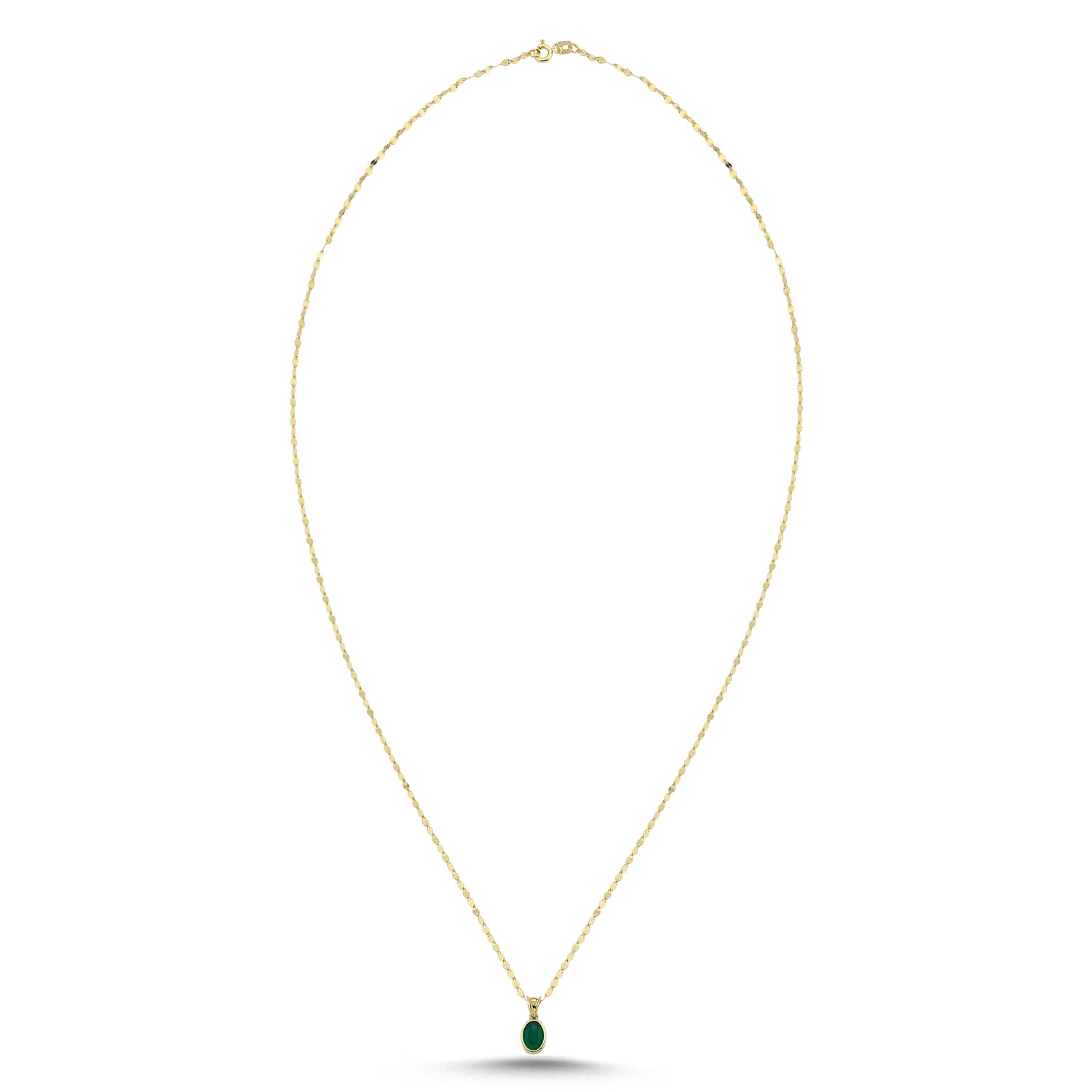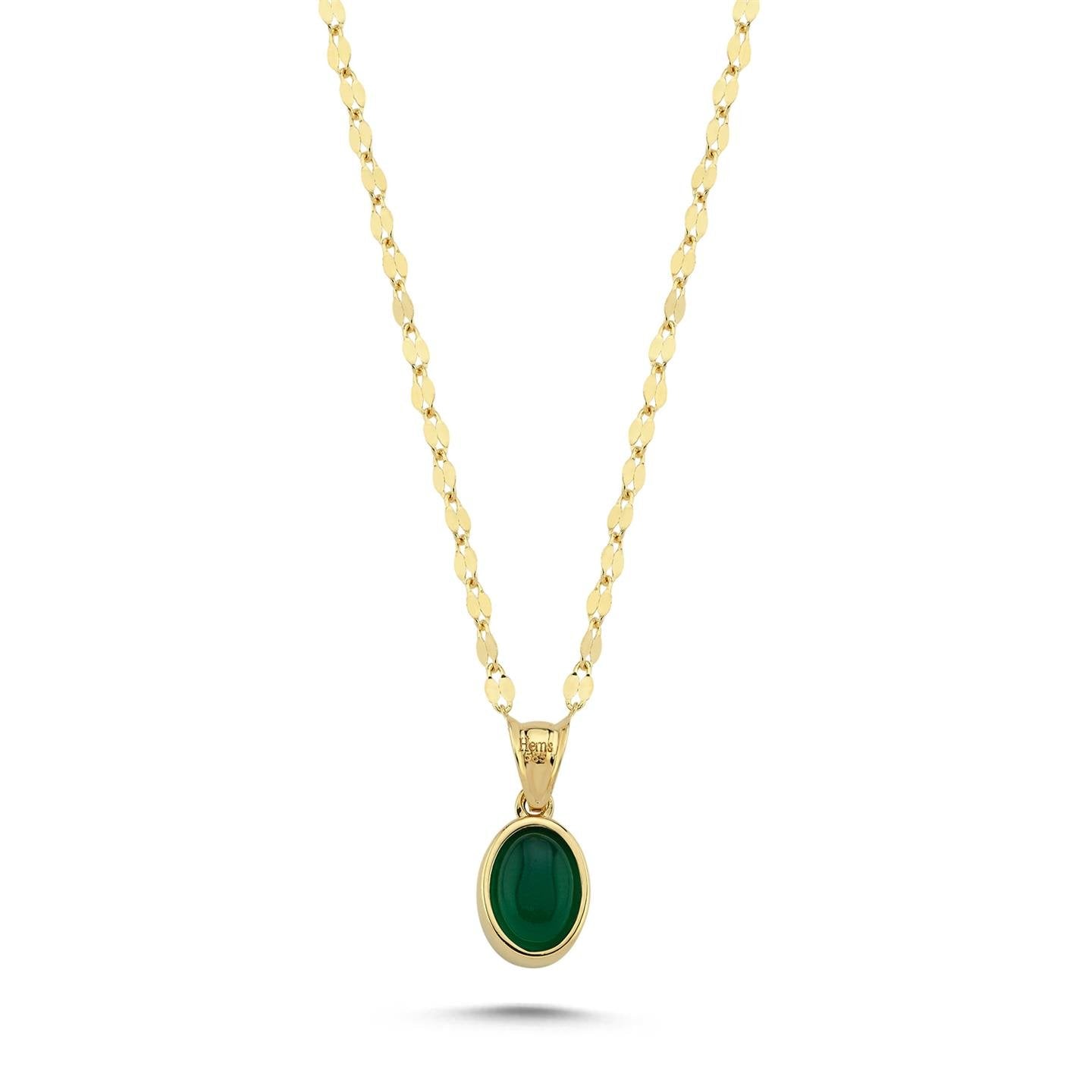 14 Ayar Altın Vintage Yeşil Akik Taşlı Kolye