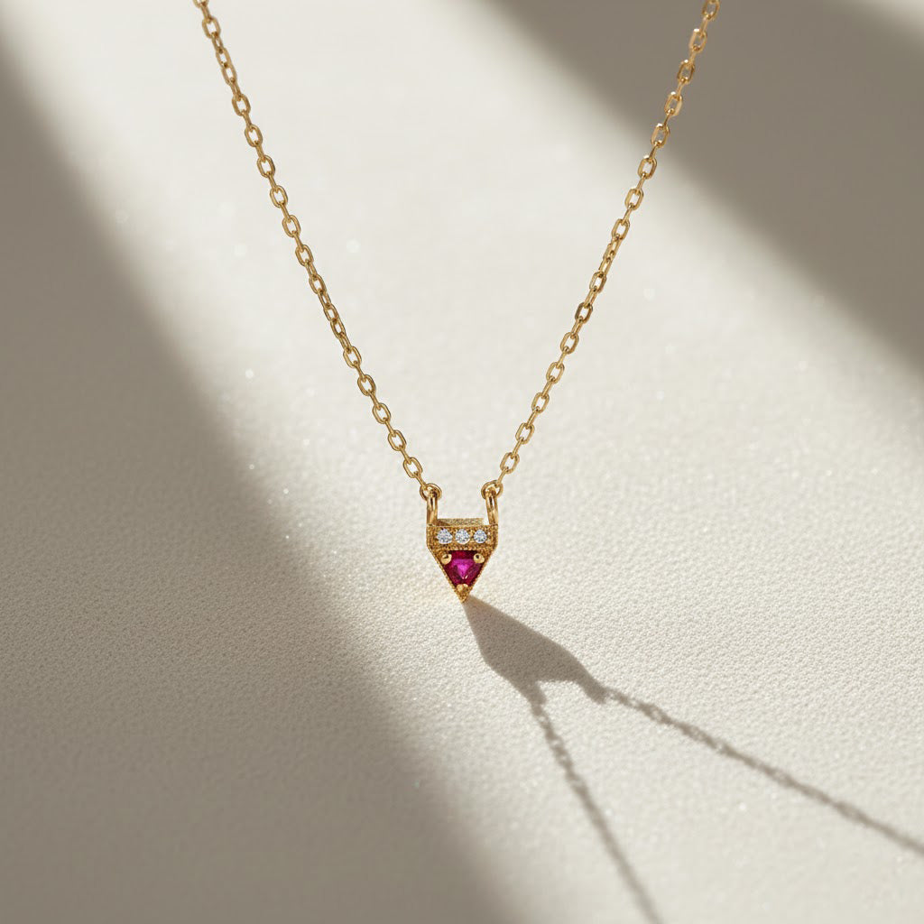 14 Ayar Altın Yakut Taşlı Üçgen Pırlanta Kolye