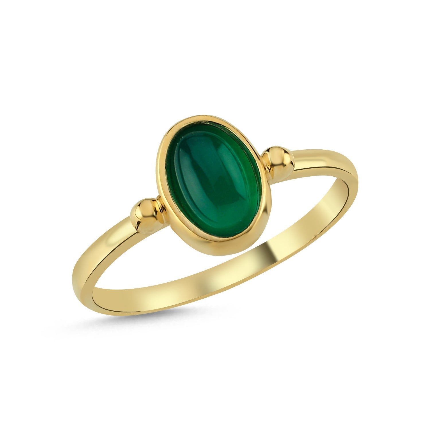 Hems Jewellery Yeşil Akik Taşlı 14 Ayar Altın Yüzük