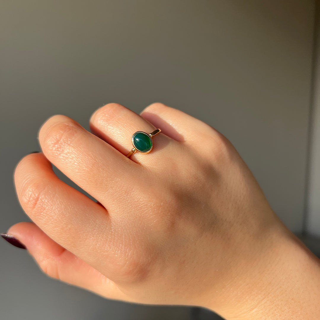 14 Ayar Altın Yeşil Akik Vintage Doğal Taş Yüzük