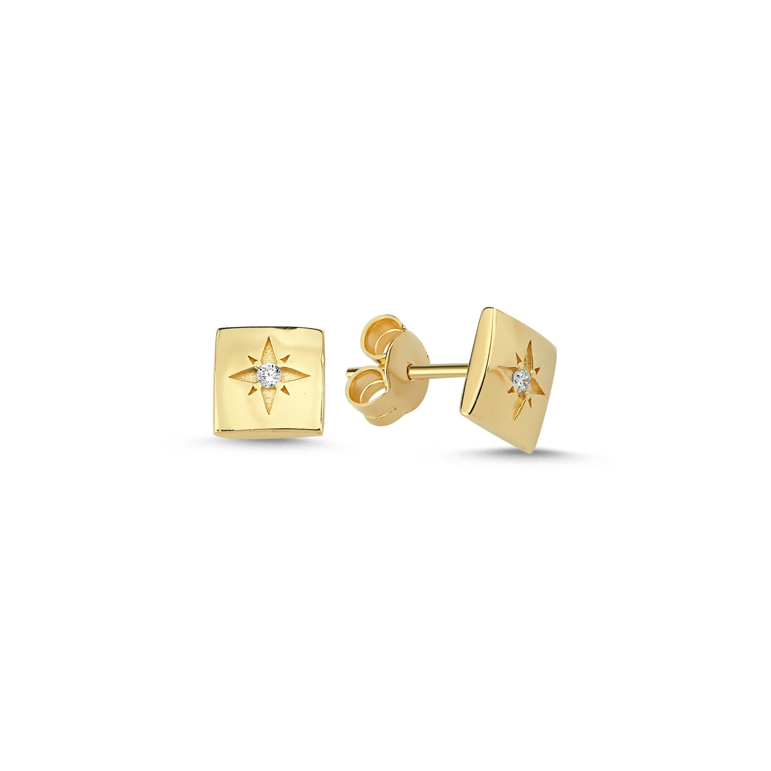 14 Ayar Altın Minimal Eta Carinae Kare Küpe