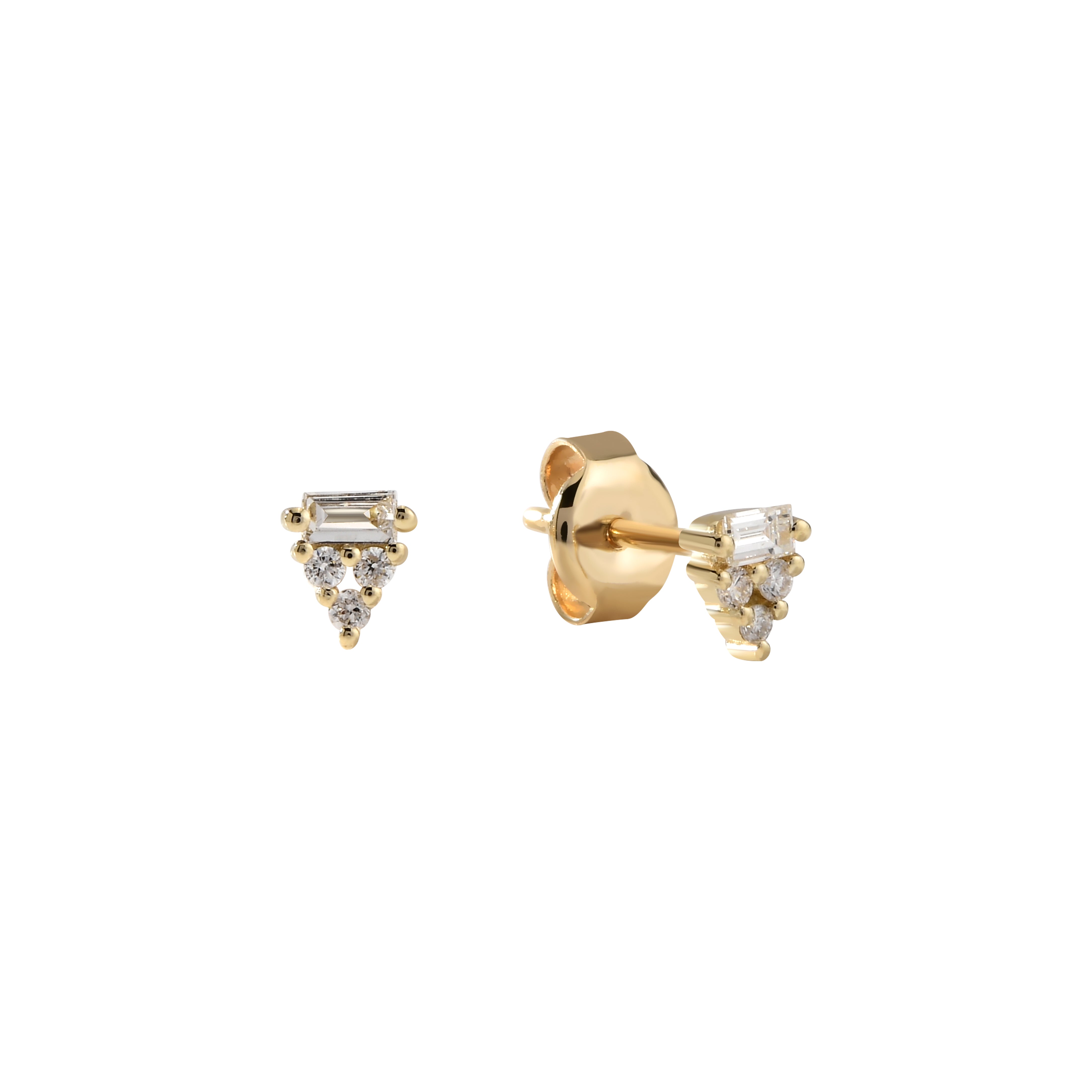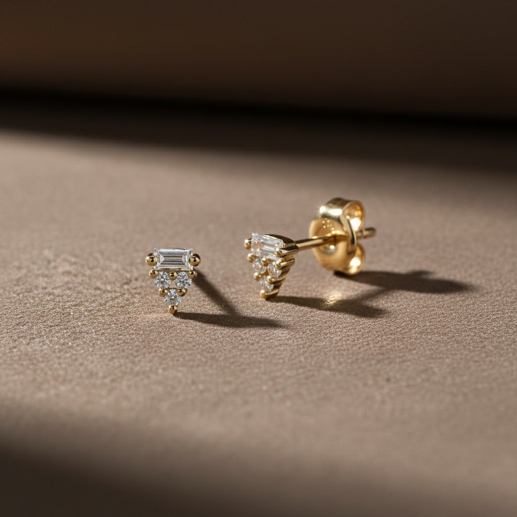 14 Ayar Baget Taşlı Üçgen Pırlanta Küpe