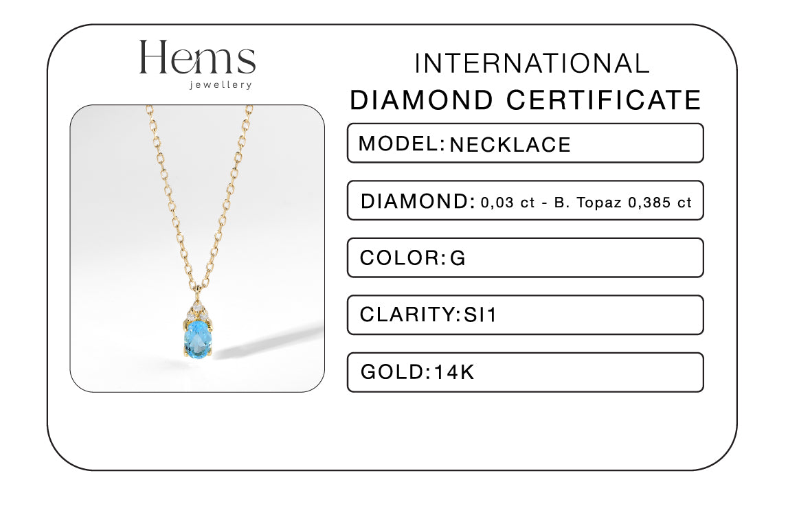 Hems Jewellery 14 Ayar Pırlanta Damla Mavi Topaz Kolye