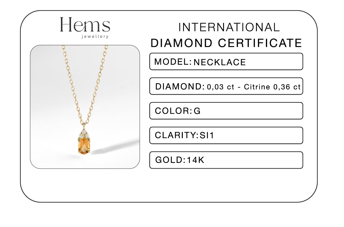 Hems Jewellery 14 Ayar Pırlanta Damla Sitrin Kolye