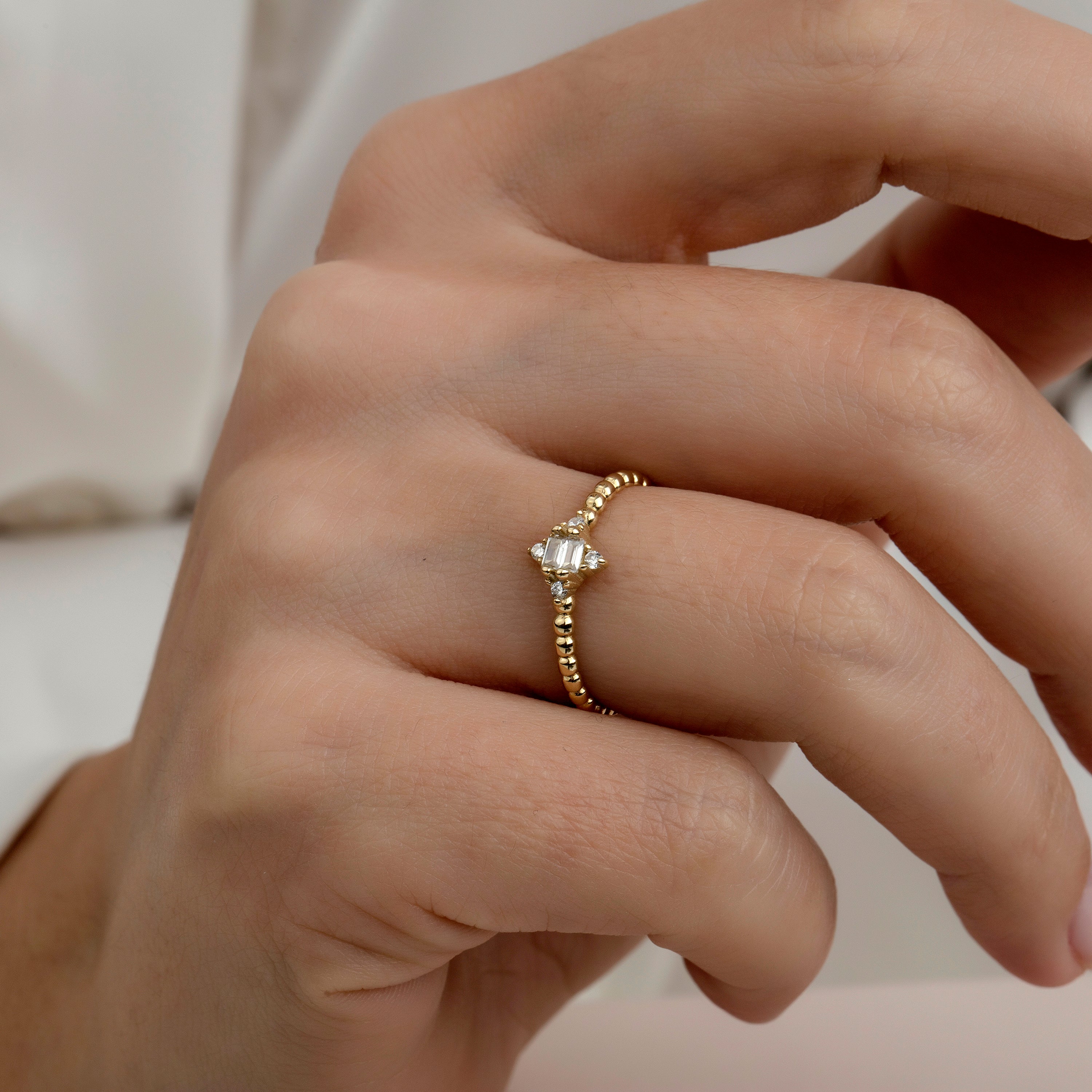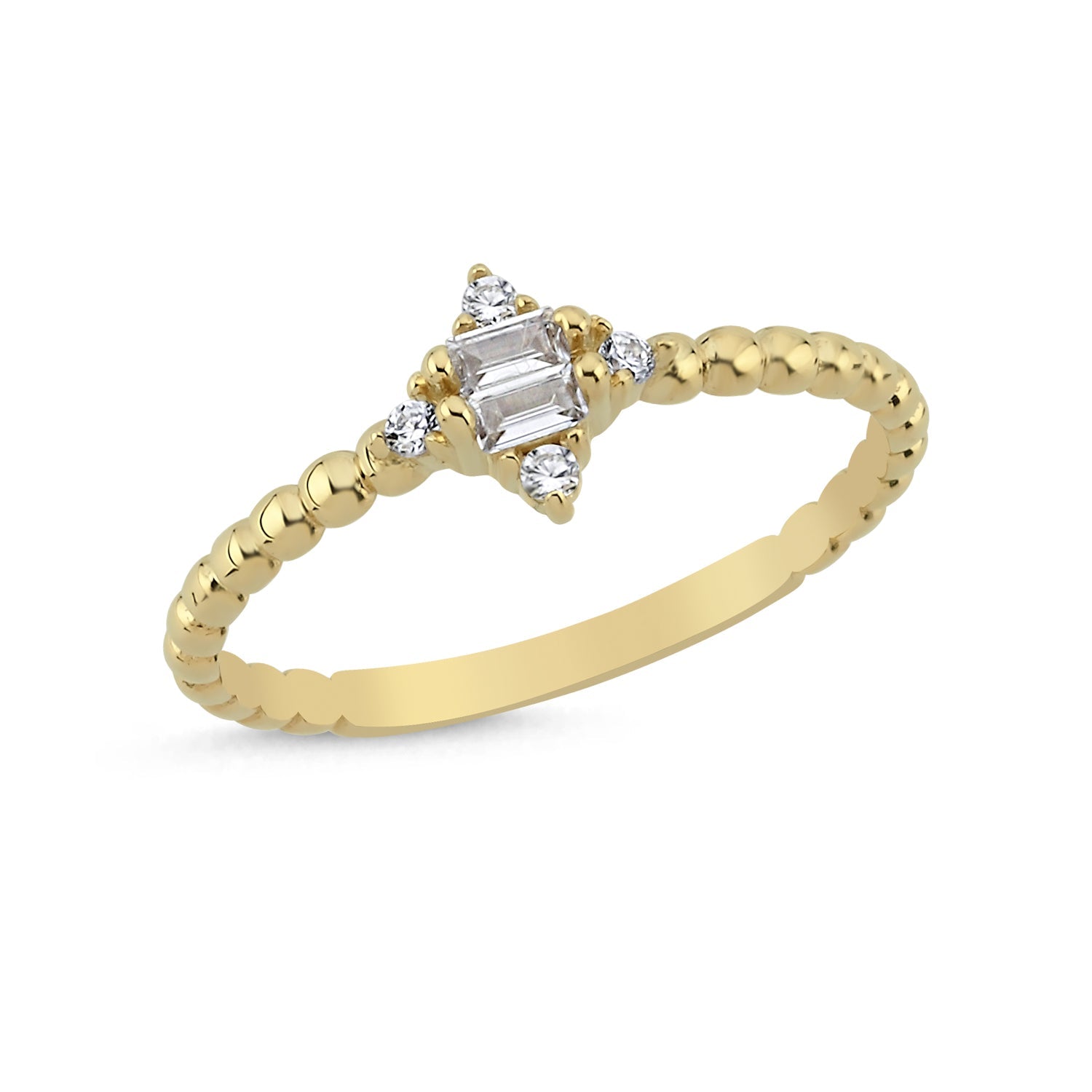 Hems Jewellery Altın Baget Taşlı Kolye Kombinli Minimal Yüzük