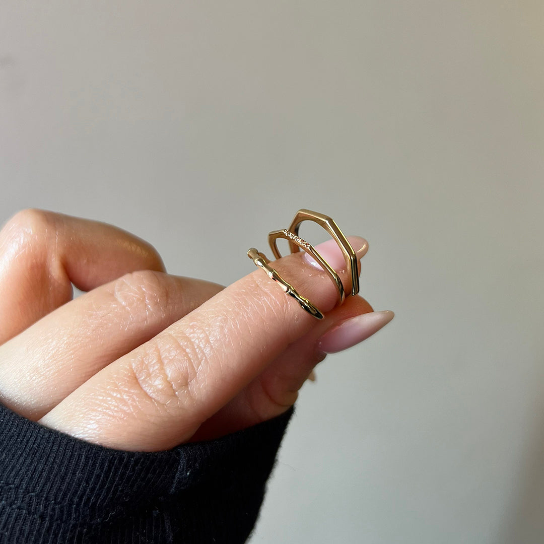 Hems Jewellery Altın Köşeli Kombinlenebilir Minimal Yüzük