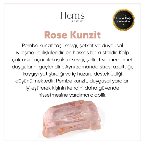 Hems Jewellery 18 Ayar Altın Raw Cut Rose Kunzit Pırlanta Kolye /1