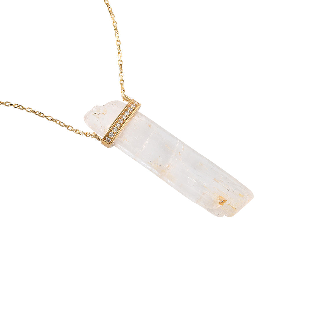 18 Ayar Altın Raw Cut Rose Kunzit Pırlanta Kolye /1